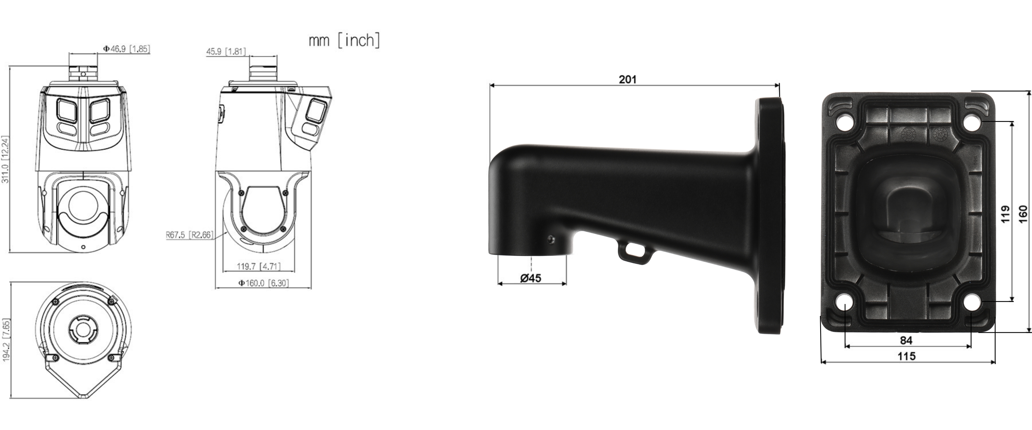 Resolution: Camera PTZ : 2560 x 1440, Panoramic camera : 4096 x 1860 ; Sensor: Camera PTZ : 1/2.8 " STARVIS™ CMOS, Panoramic camera : 2 x 1/2.7 " ; View angle: Camera PTZ : 52 ° ... 3 ° Panoramic camera : 180 ° ; Optical zoom: x 25 ; Digital zoom: x 16 ; Range of IR illumination: 100 m ; White light LED illuminator range: 50 m ; Rotation speed (manual control): 0.1 °/s ... 180 °/s (horizontal), 0.1 °/s ... 90 °/s (vertical) ; Image compression method: Smart H.265+ ; Alarm inputs / outputs: 2 / 1 ; Audio: Bi-directional audio streaming support ; Memory card slot: Micro SD card support up to 512GB ; Power supply: PoE (802.3at), 12 V DC ;