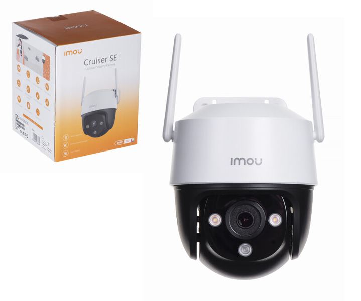1/3" 4 Мп CMOS, 2560*1440, FULL COLOR Фиксированный объектив: 3.6мм: 79°(Г.), 44°(В.), 94°(Д.) H.265/H.264(30 к/с) поворот 0~355° по горизонтали и 0~90° по вертикали 16x цифровой зум Встроенный ИК-подсветка 30м Встроенный микрофон Детекция движения Настраиваемые зоны Обнаружение человека Встроенный прожектор и сирена Интеллектуальное слежение за движущимися объектами Порт 1 x 100Мбит/с Wi-Fi:IEEE802.11b/g/n, двойная антенна Приложение imou: iOS, Android ONVIF Поддержка Micro SD до 256 ГБ Кнопка сброса Питание DC 12В/1A Потребление: <6.2Вт Материал: пластик Рабочие условия: -20°C ~ +50°C Относительная влажность менее 95% IP66 Размеры: 120,7 * 136,2 * 183,3 мм Вес: 390 г