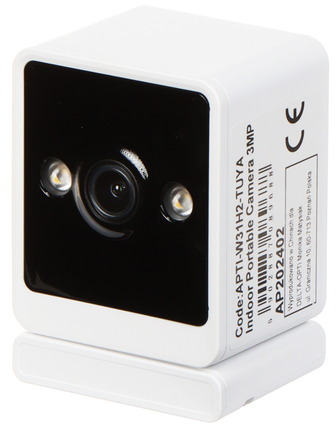 Camera working with the Tuya platform; Resolution: 2048 x 1536 ; View angle: 70 ° ; Range of IR illumination: 30 m ; White light LED illuminator range: 30 m ; Audio: Bi-directional audio streaming support ; Image compression method: Smart H.264 ; Memory card slot: Micro SD card support up to 128GB ; Main features: Wi-Fi Module - IEEE 802.11 b/g/n ; Power supply: 5 V DC ;