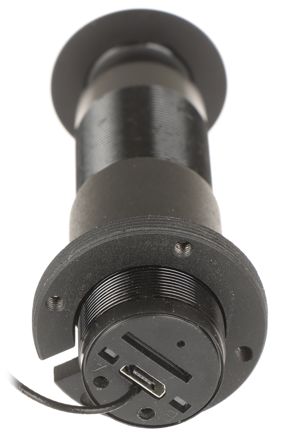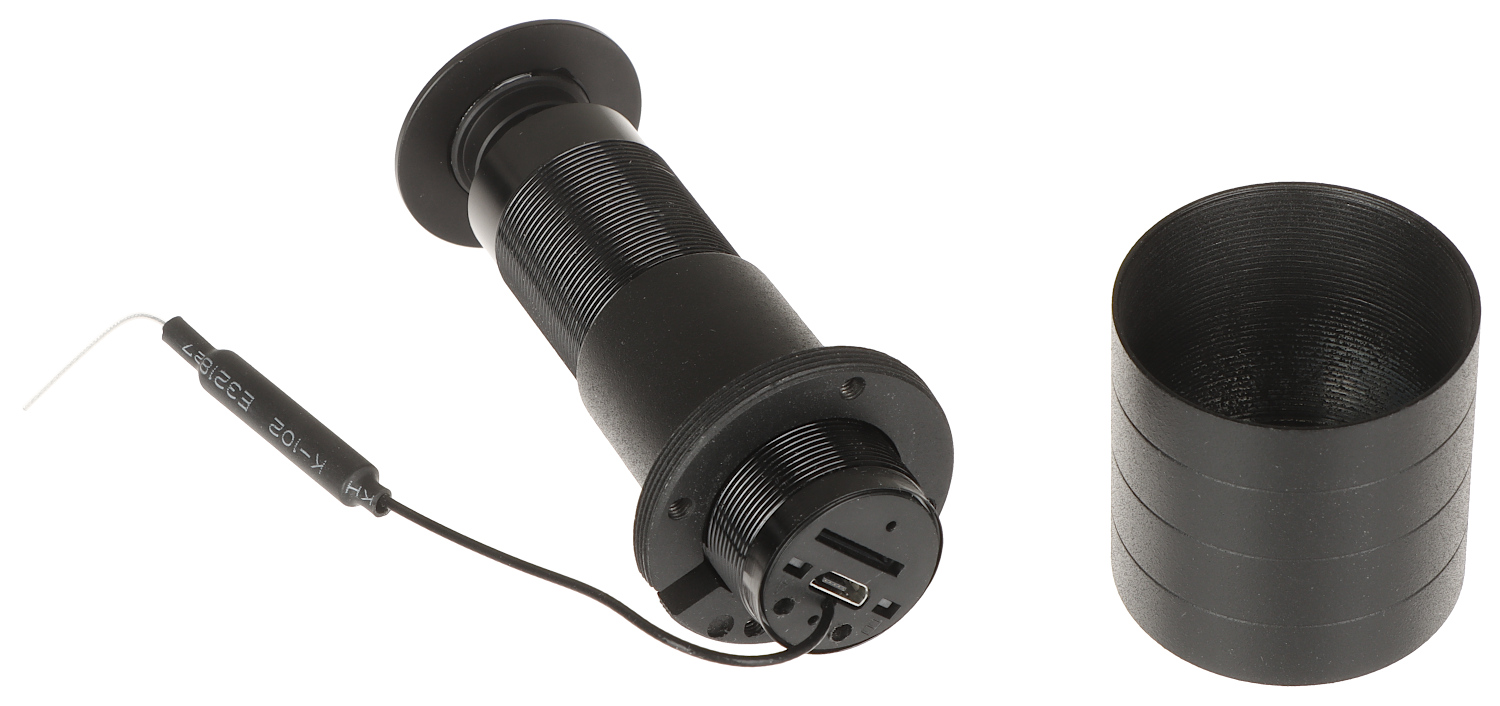 Camera working with the Tuya platform; Sensor: 1/2.7 " CMOS ; Matrix size: 2.1 Mpx ; Resolution: 1920 x 1080 ; Audio: Microphone built-in ; Memory card slot: Micro SD memory cards up to 128GB support (possible local recording) ; Main features: Wi-Fi Module - IEEE 802.11 b/g/n, Motion Detection ; Door thickness range: 35 ... 85 mm ; Power supply: 5 V DC ;