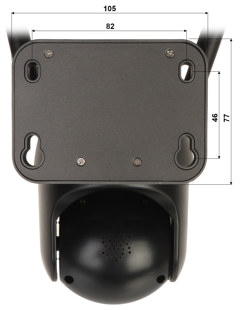 Camera working with the Tuya platform; Resolution: 2304 x 1296 ; View angle: 76 ° ; Range of IR illumination: 30 m ; White light LED illuminator range: 15 m ; Horizontal rotation range: 0 ° ... 355 ° Rotation of the head is limited by stops ; Vertical rotation range: 0 ° ... 90 ° ; Audio: Bi-directional audio streaming support ; Memory card slot: Micro SD memory cards up to 64GB support (possible local recording) ; Power supply: , Solar Panel, 5 V DC - USB-C socket ;