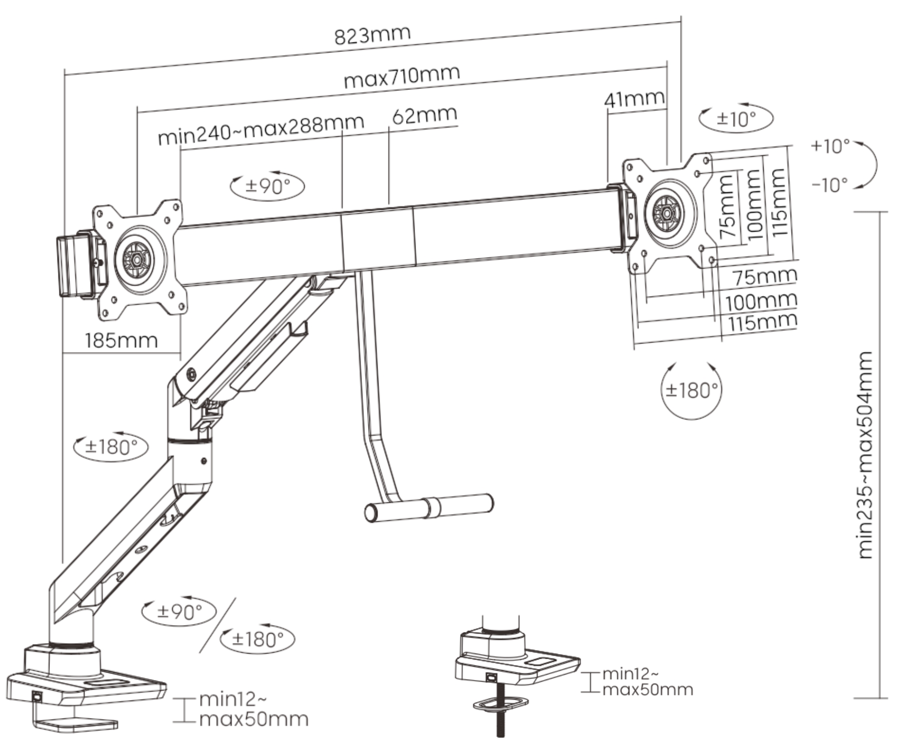 • Adjusting the gas spring allows the spring action to be adjusted to the weight of the monitor