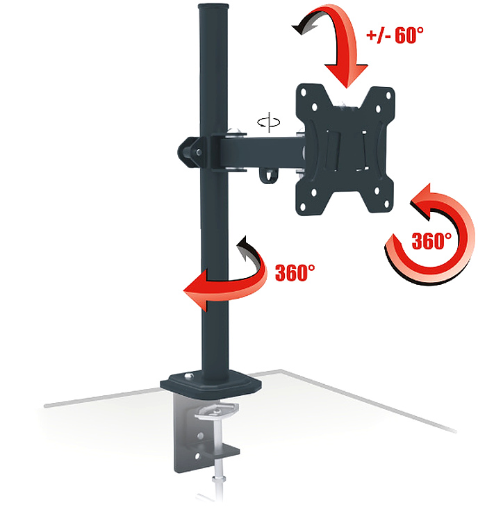 Mounting standard: VESA 100 x 100, 75 x 75 ; Screen size range: 13 " ... 27 " ; Bearing capacity: 8 kg ;