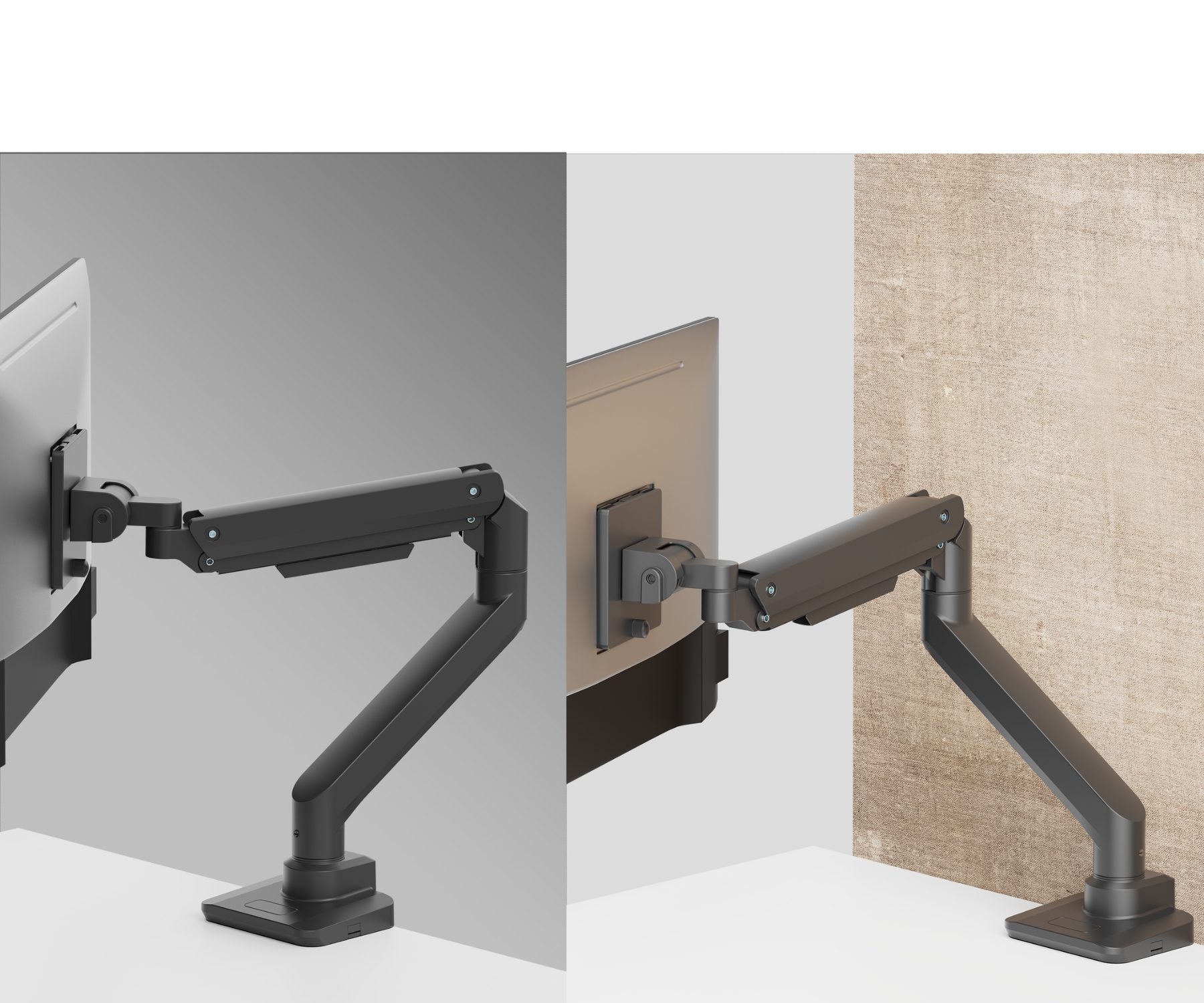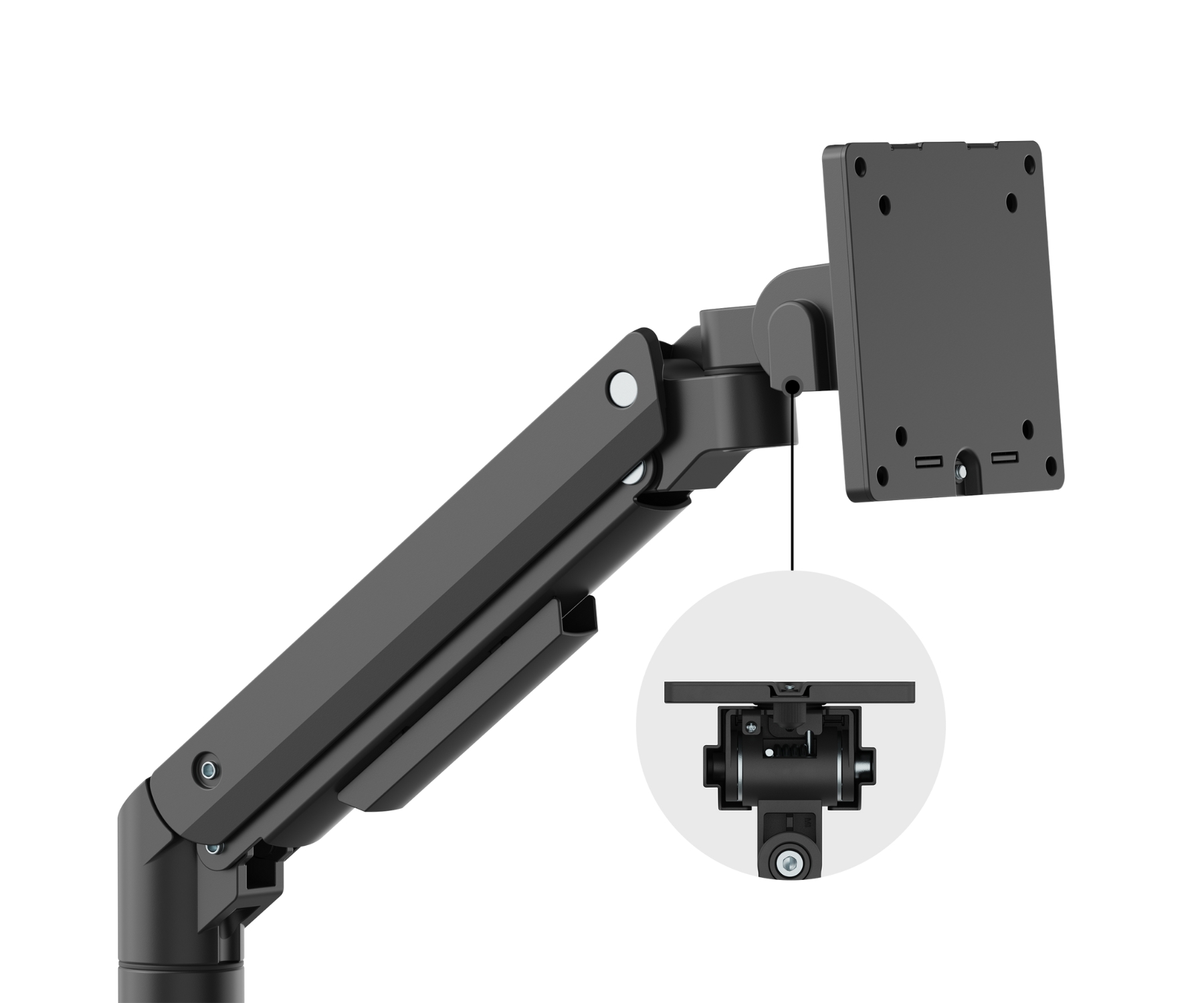 Desk mount on a gas spring; Mounting standard: VESA - 75 x 75, 100 x 100 ; Screen size range: 17 " ... 49 " ; Bearing capacity: 20 kg ;
