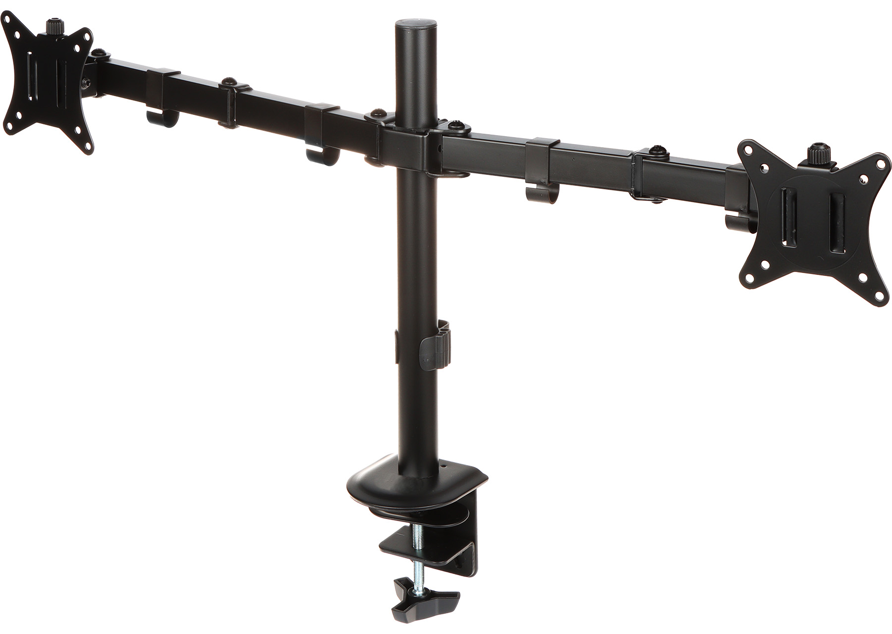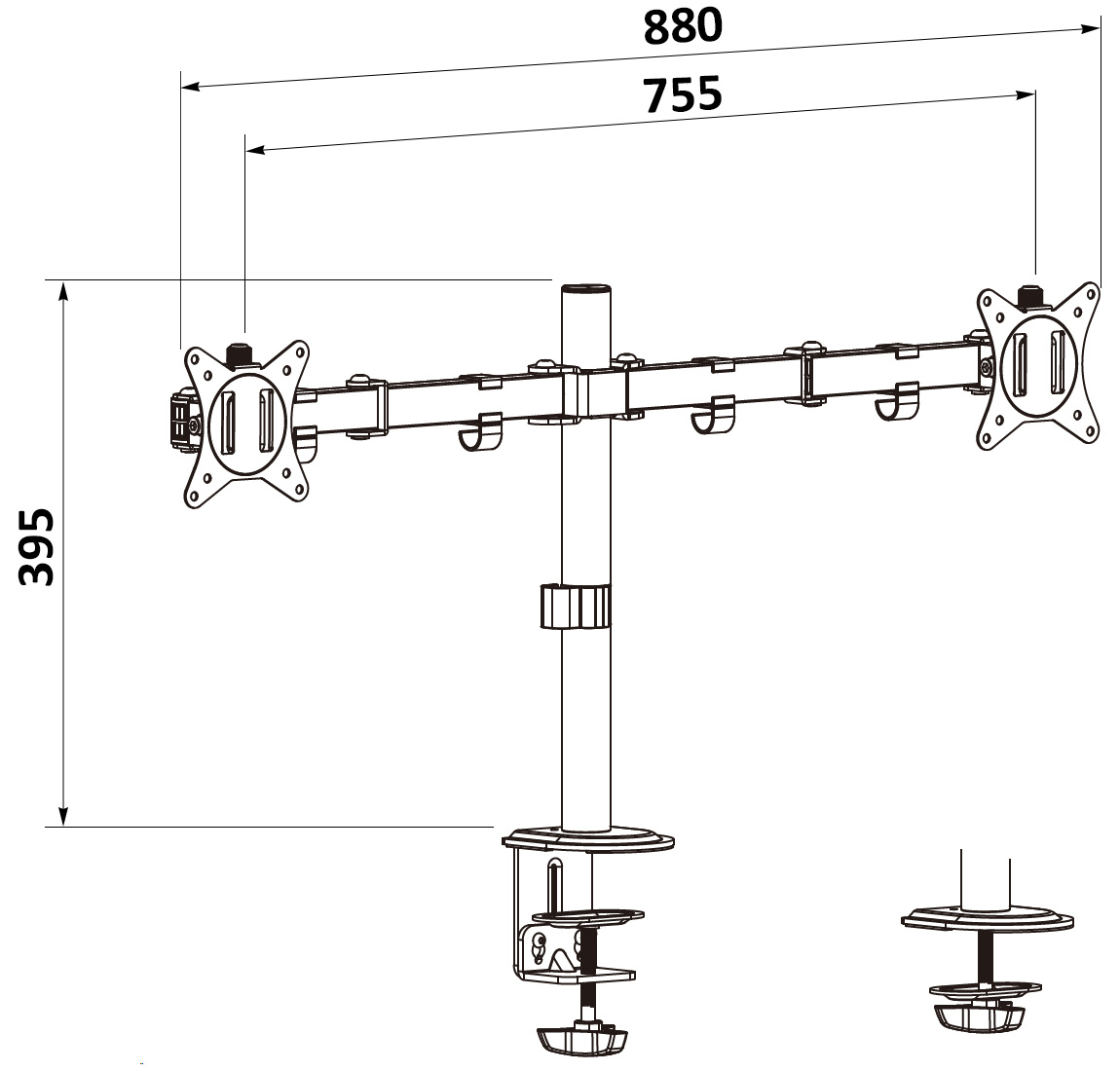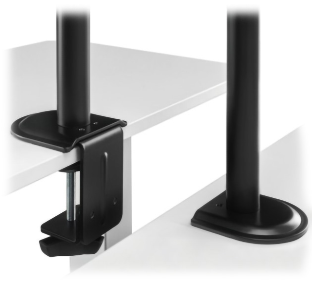 The BRATECK-LDT66-C024 is a mount allowing to install two LCD monitors to the desk or other flat surfaces; Mounting standard: VESA 75, 100 ; Screen size range: 32 " (max) ; Bearing capacity: 2 x 9 kg ;