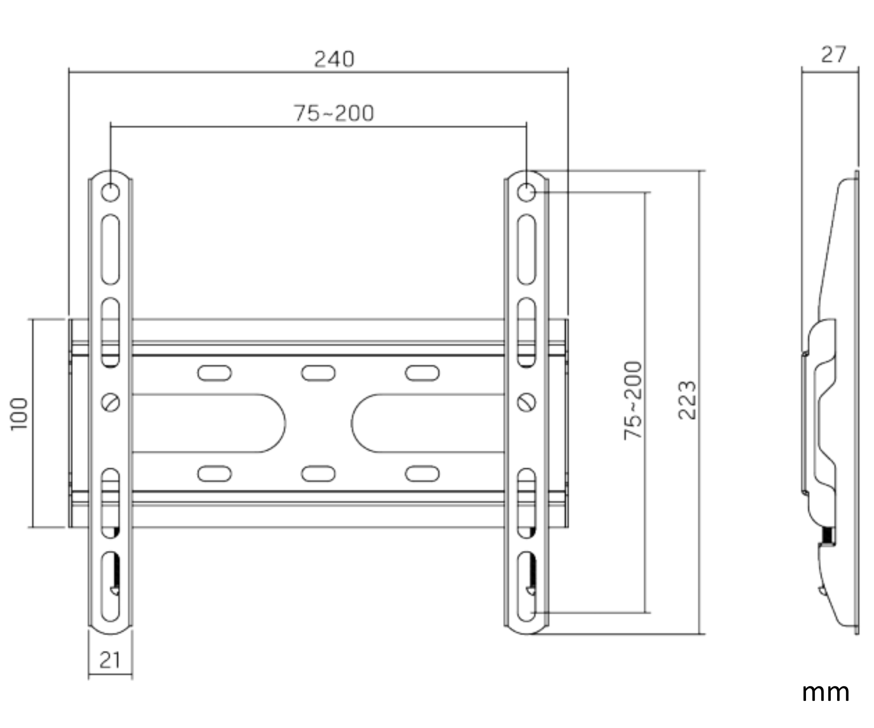 Screen size range: 23 " ... 43 " ; Bearing capacity: 45 kg ; Distance from mounting surface: 27 mm ;