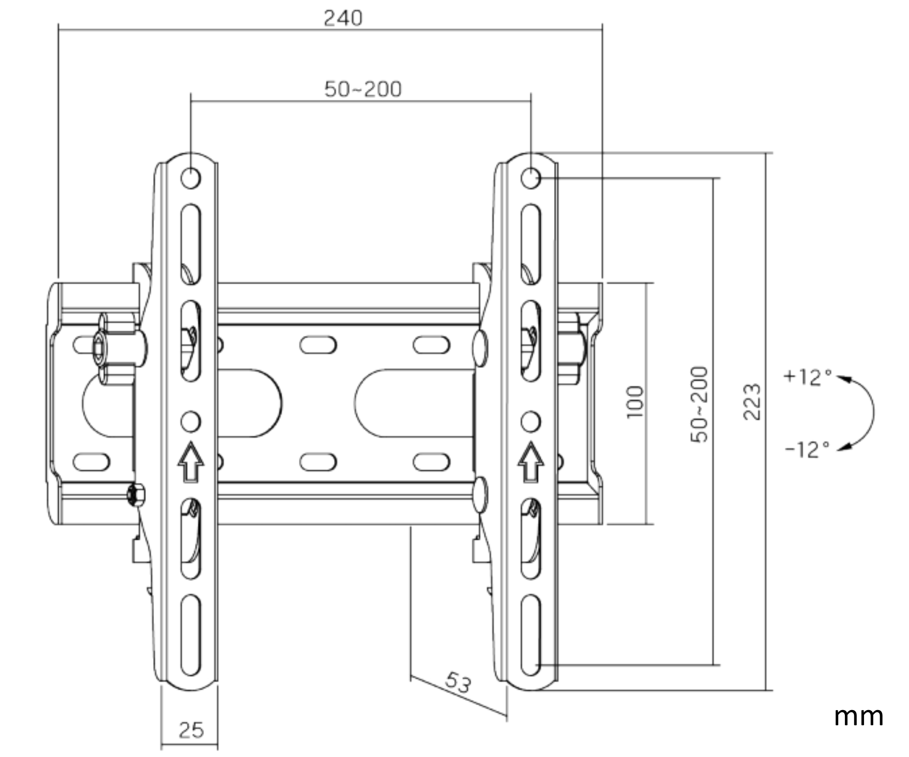 Screen size range: 23 " ... 43 " ; Bearing capacity: 45 kg ; Distance from mounting surface: 53 mm ;