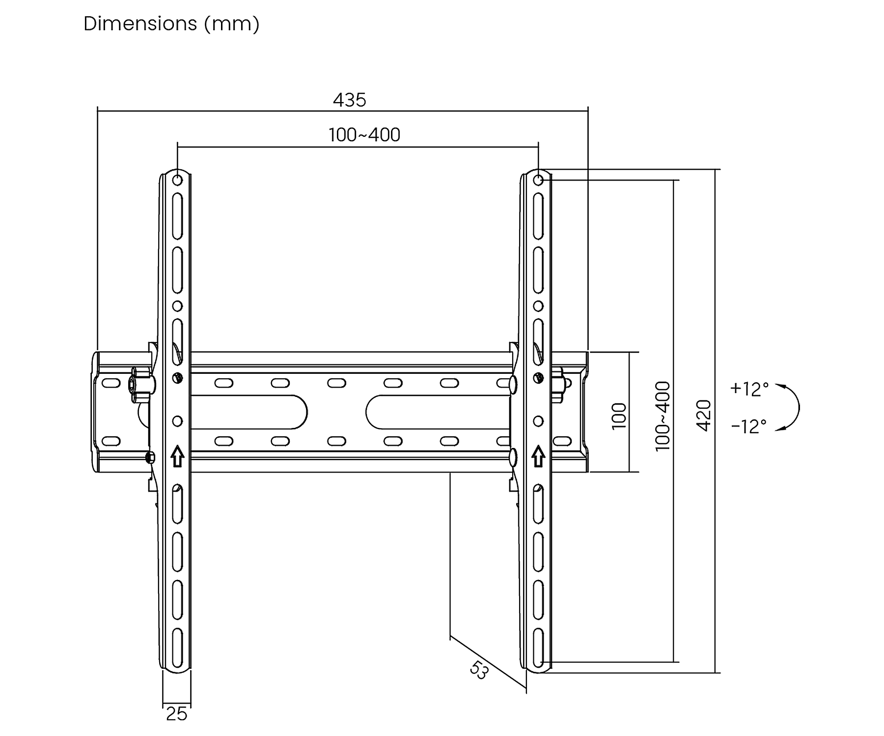 Screen size range: 32 " ... 70 " ; Bearing capacity: 45 kg ; Distance from mounting surface: 53 mm ; Tilt adjustment: - 12 ° ... 12 ° ;