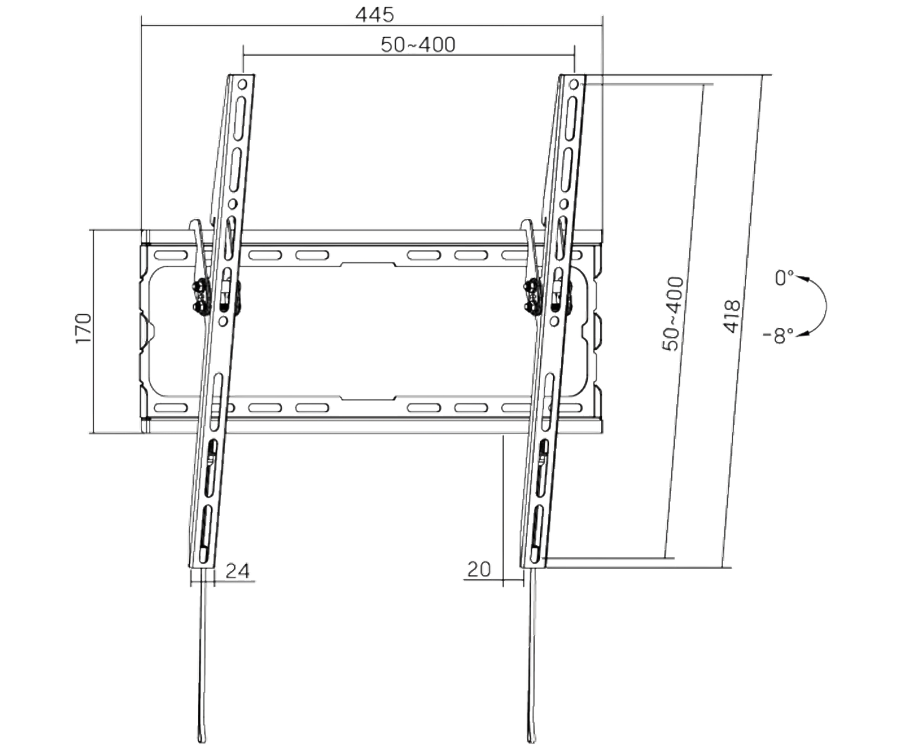 Screen size range: 32 " ... 70 " ; Bearing capacity: 45 kg ; Distance from mounting surface: 20 mm ;
