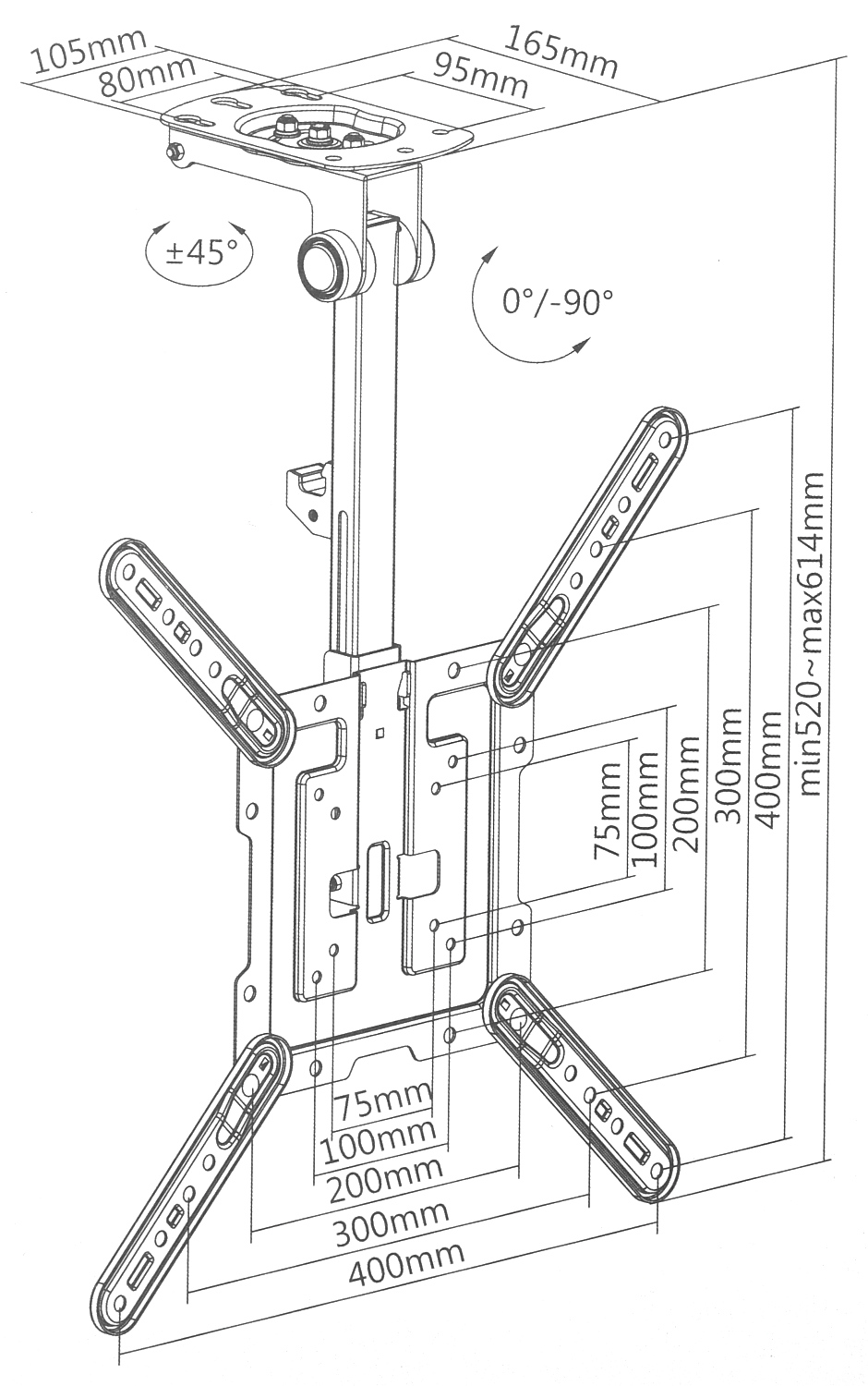 Mount designed for ceiling mounting; Screen size range: 23 " ... 55 " ; Bearing capacity: 20 kg ;