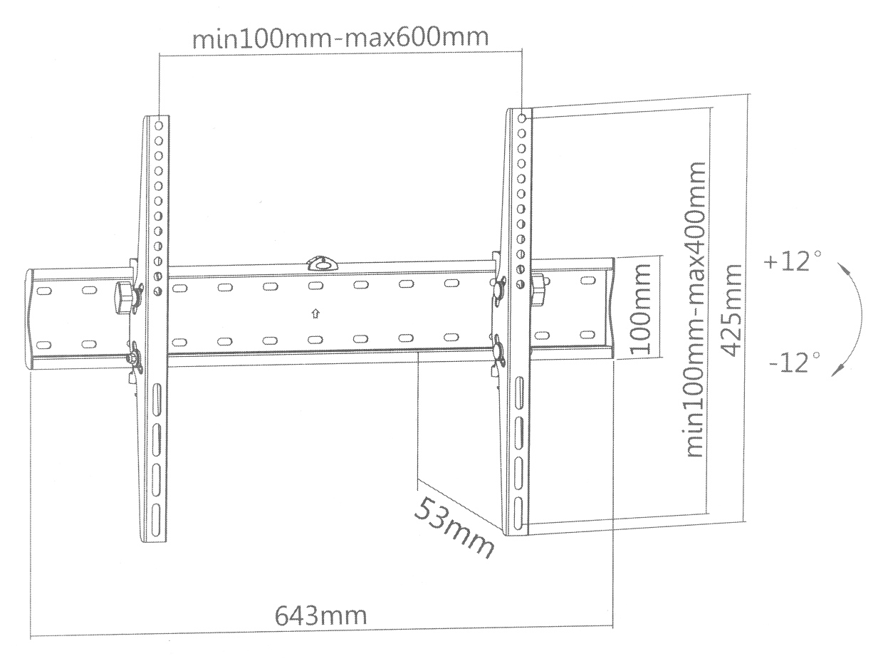 Screen size range: 37 " ... 70 " ; Bearing capacity: 40 kg ; Distance from mounting surface: 53 mm ;