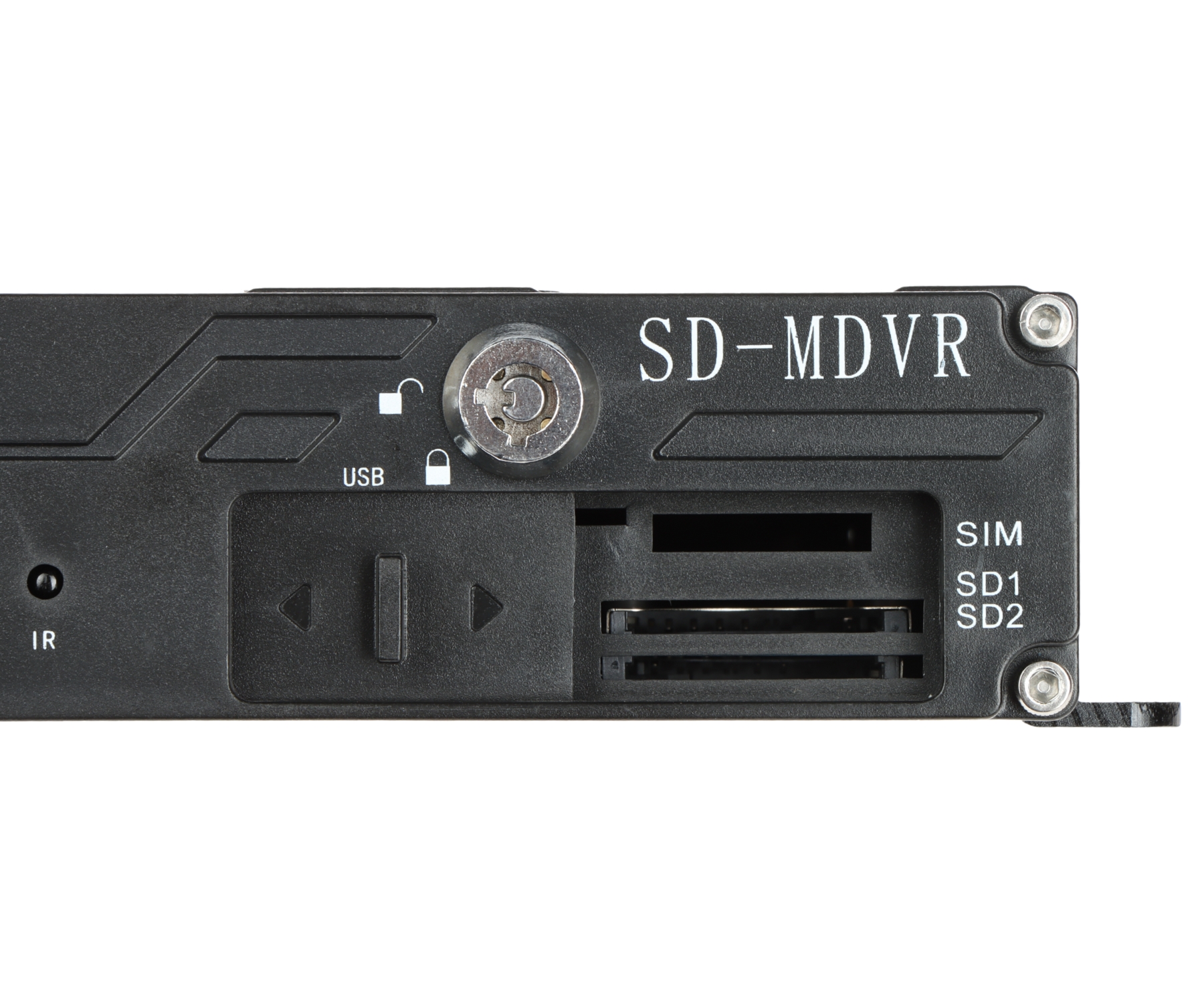Resolution: 1920 x 1080 ; Video inputs: 4 pcs M12, 4-pin plug ; Video outputs: 1 pcs HDMI, 1 pcs VGA, 1 pcs CVBS ; Resolution of recording video files: 1920 x 1080, 1280 x 720, 720 x 576 ; microSD socket: 2 x ; Max. capacity of memory card: 2 x 256 GB SD/SDHC ; G-Sensor; RS-485; USB port; Ethernet port: 1 x RJ-45 ; Alarm inputs / outputs: 4 / 1 ; Operation temp: -20 °C ... 70 °C ;