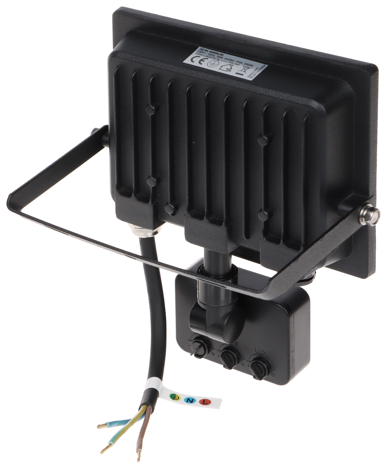 Luminous flux: 2400 lm ; Light color: Neutral, 4000 K ; Twilight switch; Power supply: 230 V AC ; Nominal power: 30 W ; Main features: PIR detector - Built-in, PIR detection sensitivity adjustment, Sensitivity adjustment of the twilight sensor, Lighting time adjustment, ; Mechanical protection class: IK08 ; "Index of Protection": IP44 ;