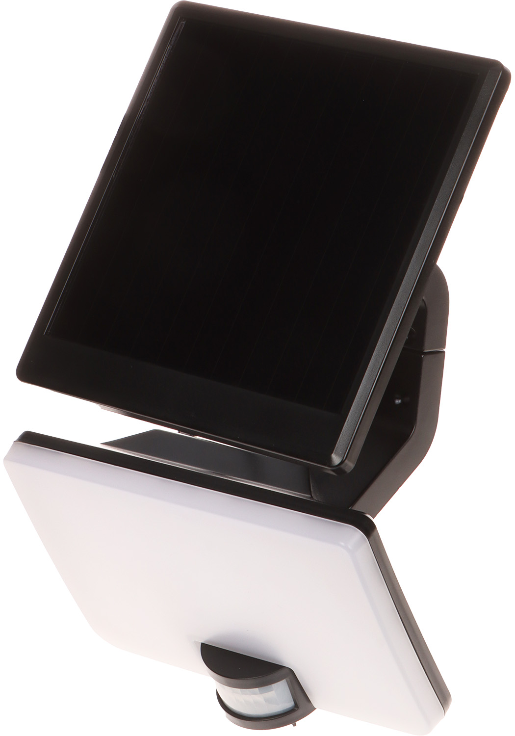 Luminous flux: 1200 lm ; Light color: Neutral, 4000 K ; Twilight switch; Power supply: 3.7 V DC - 3000 mAh Li-Ion battery ; Nominal power: 10 W ; Main features: Solar Panel Connecting cable 2m PIR detector - Built-in ; "Index of Protection": IP54 ;