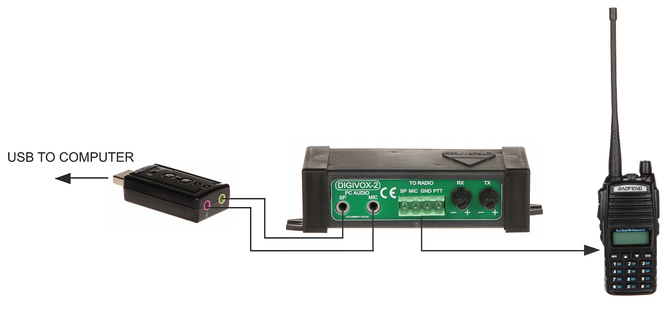 The DIGIVOX-2V2 is a passive, no power supply system that interfaces the computer with the radio; The device is designed for digital modes that use the sound card as a modem; Device type: Passive ;