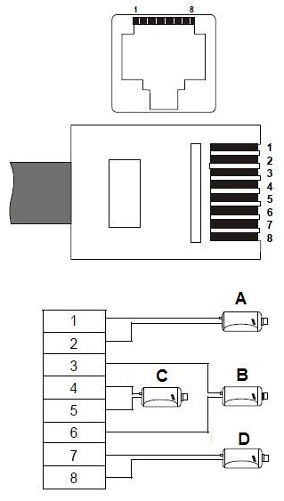 Symmetrical socket type: Cable terminals / RJ-45 (8-pin, 4 pairs)