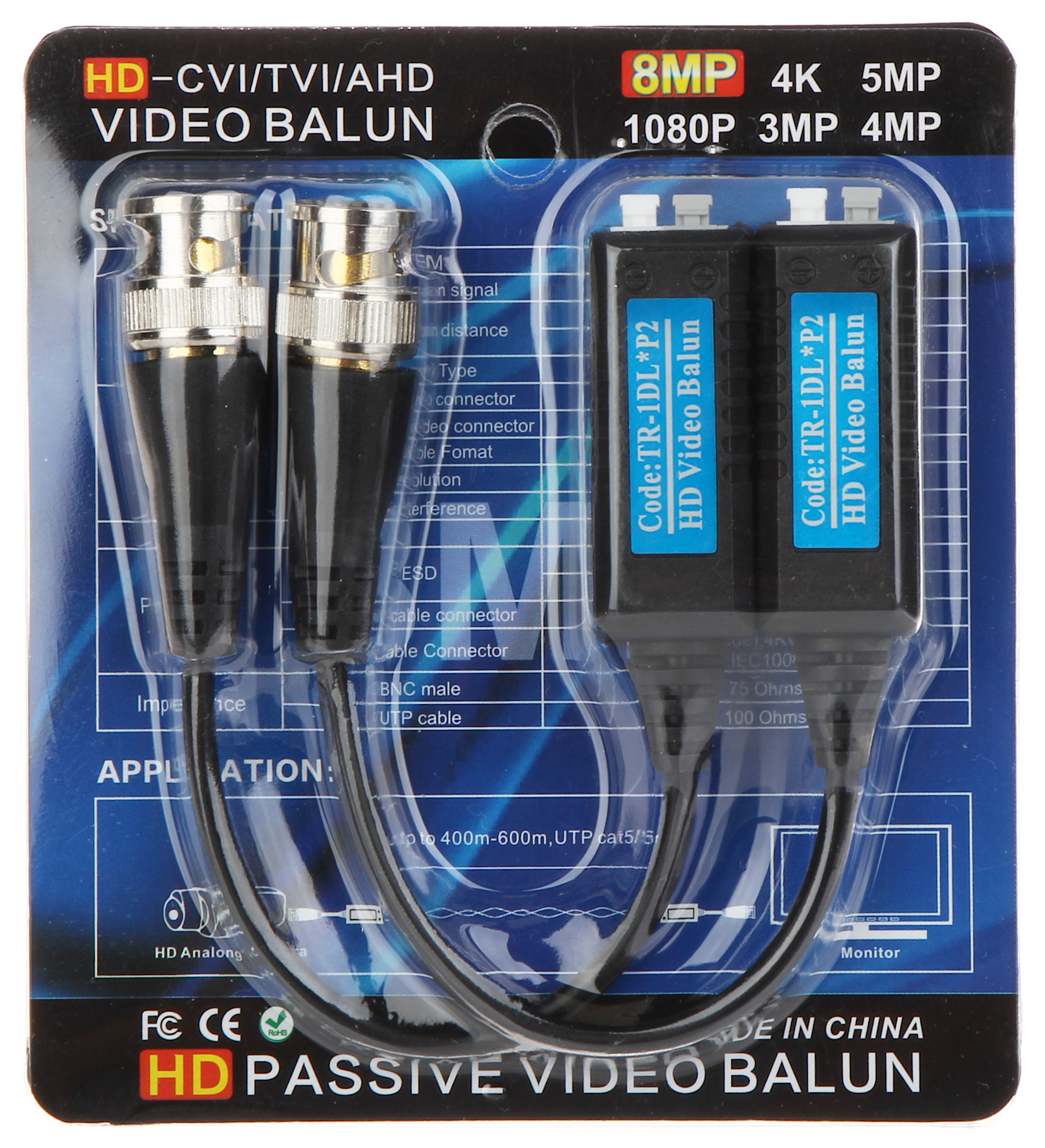In package: 2 pcs The price for package ; Standard: AHD - 8 Mpx 4K UHD, HD-CVI - 8 Mpx 4K UHD, HD-TVI - 8 Mpx 4K UHD, CVBS - PAL, NTSC ; Device type: Passive ; Number of channels: ; Symmetrical socket type: Spring terminals ;