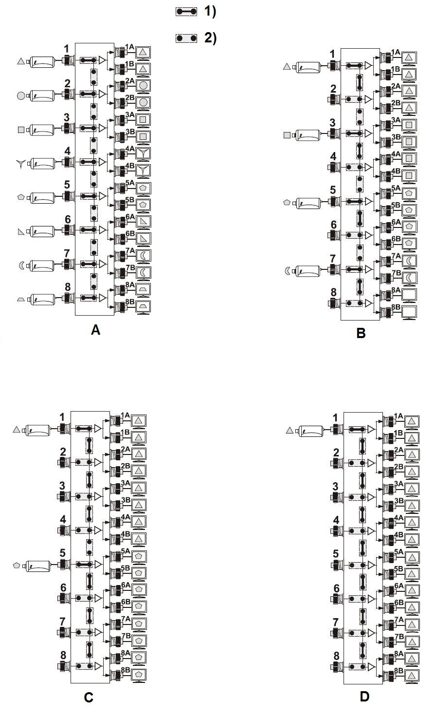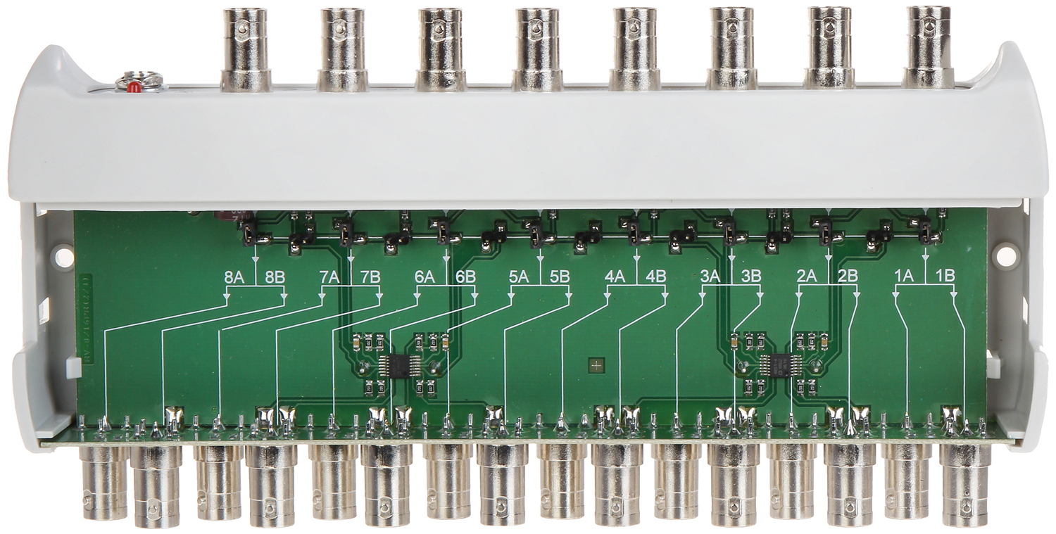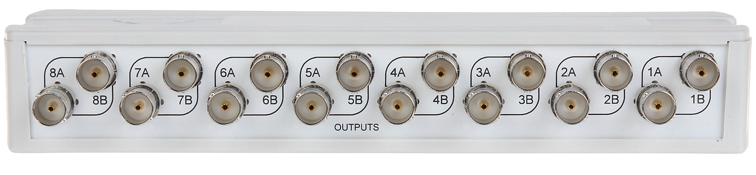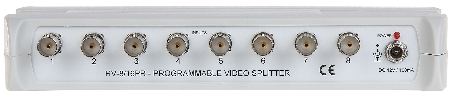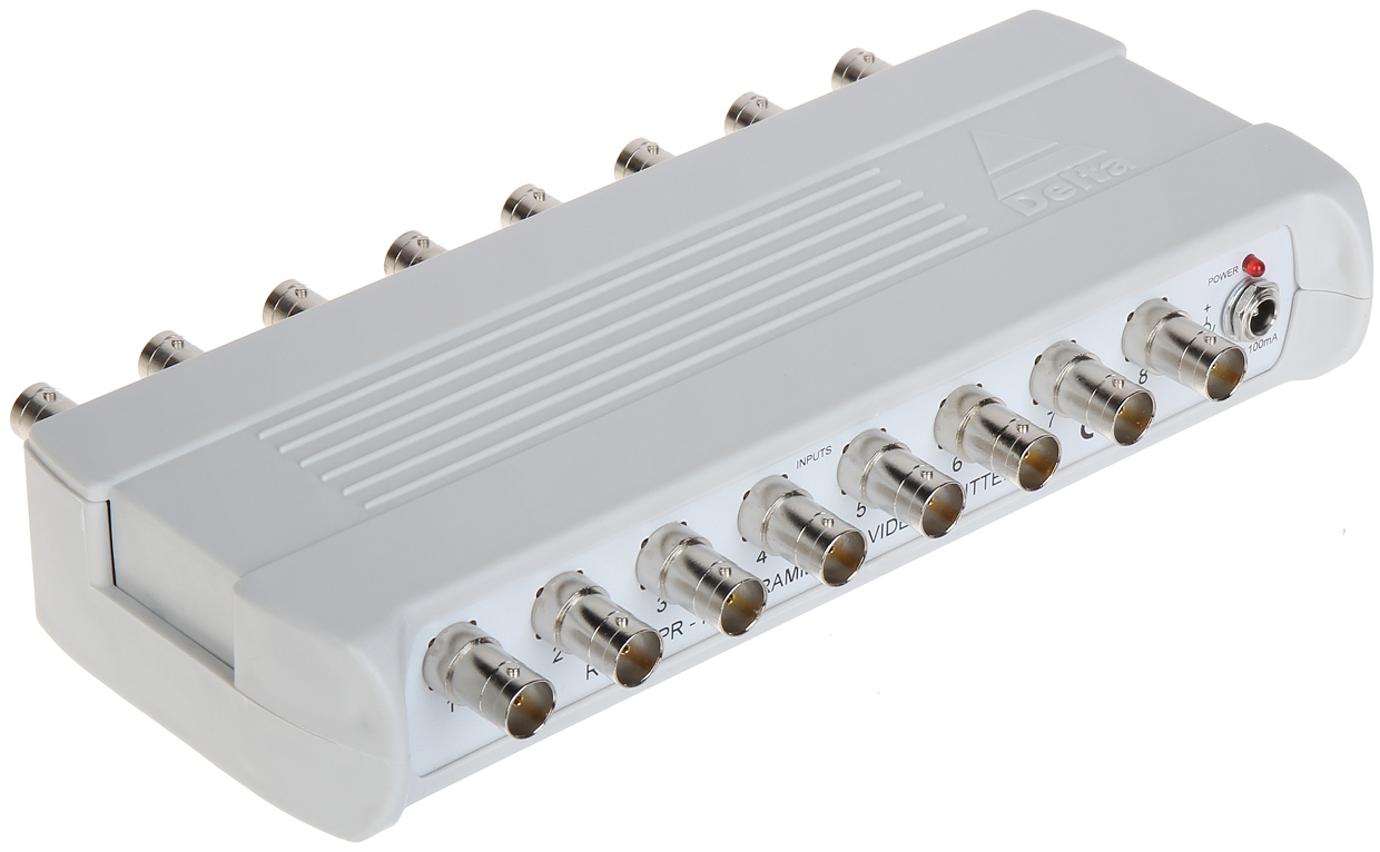 User programmable splitter; Standard: CVBS - PAL, NTSC ; Number of inputs: 8 pcs BNC ; Number of outputs: 16 pcs BNC ; Power supply: 12 V DC ;