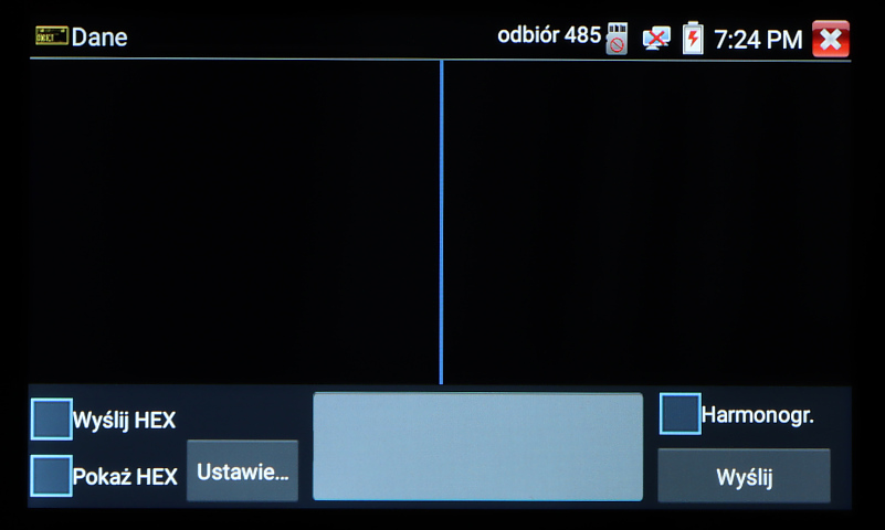 RS-485, RS-232 lines test: | Data analysis from control device (the commands are displayed in hexadecimal) |