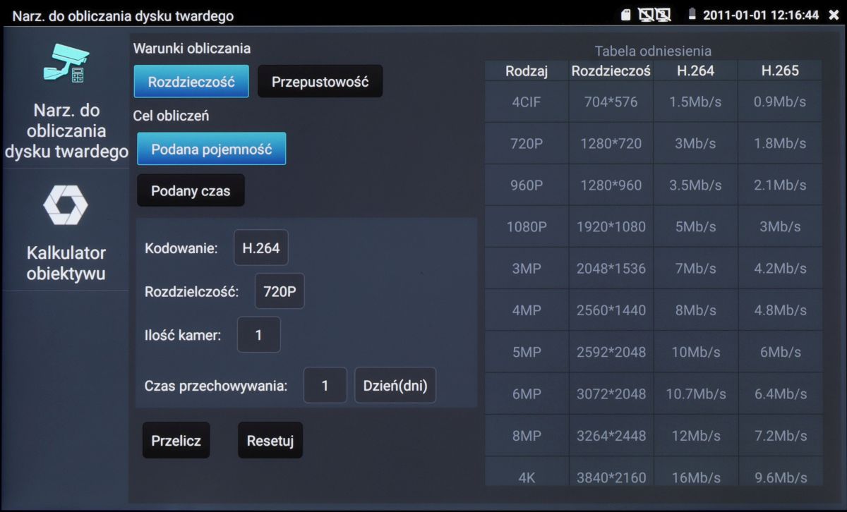 • IP cameras test - Supported image compression methods : H.265, H.264, MJPEG