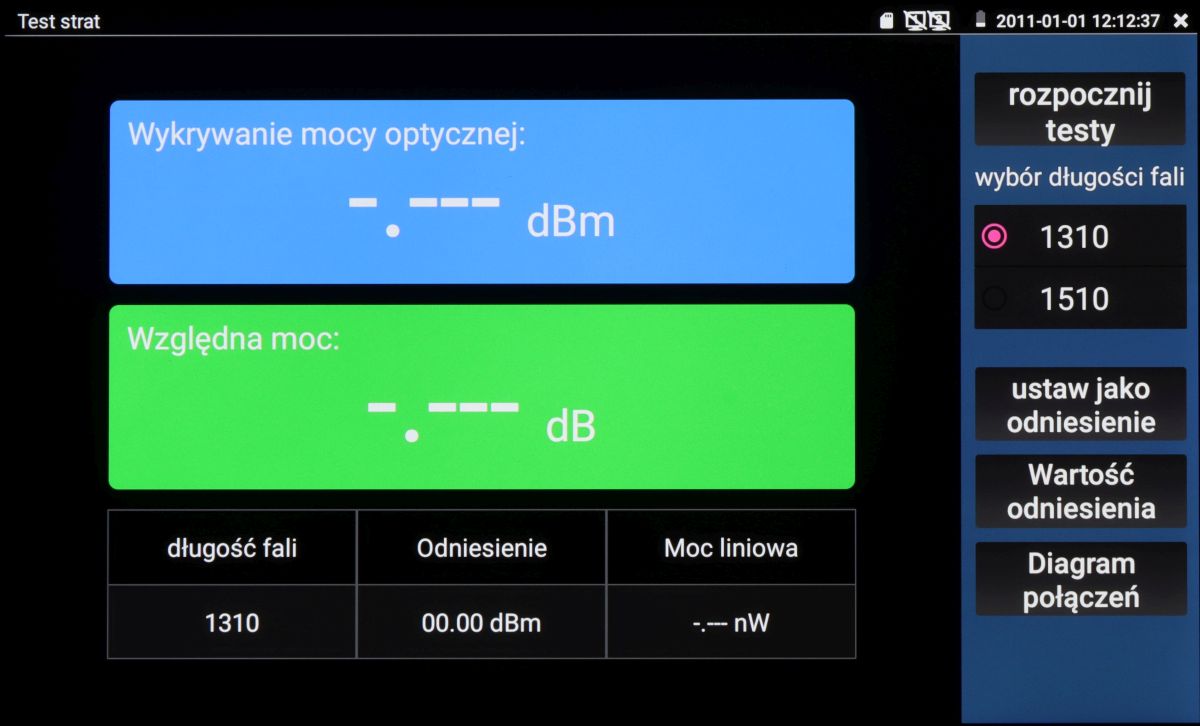 • Optical power measurement: Optical power measurement in fiber optic networks (ST and SC adapters)