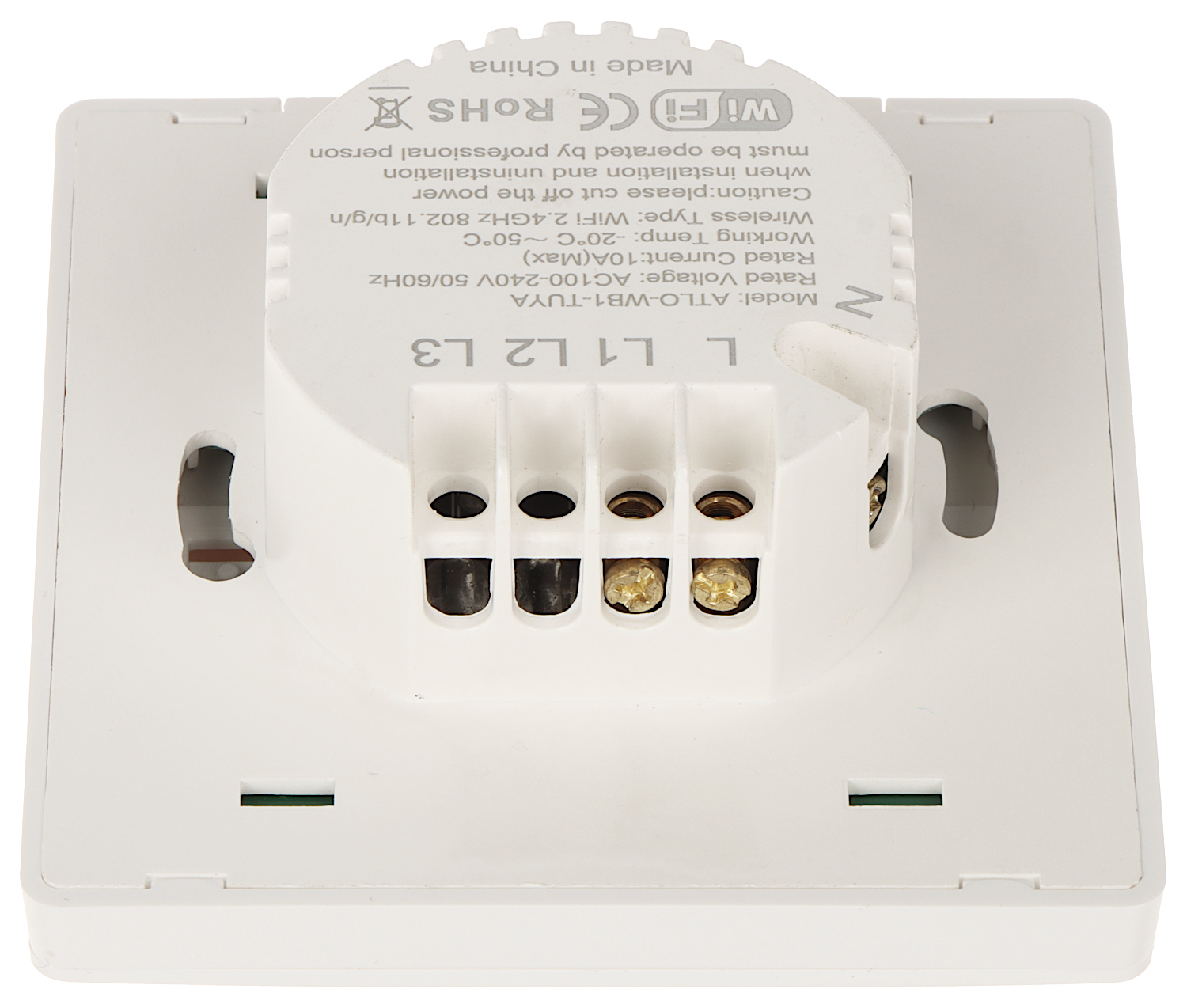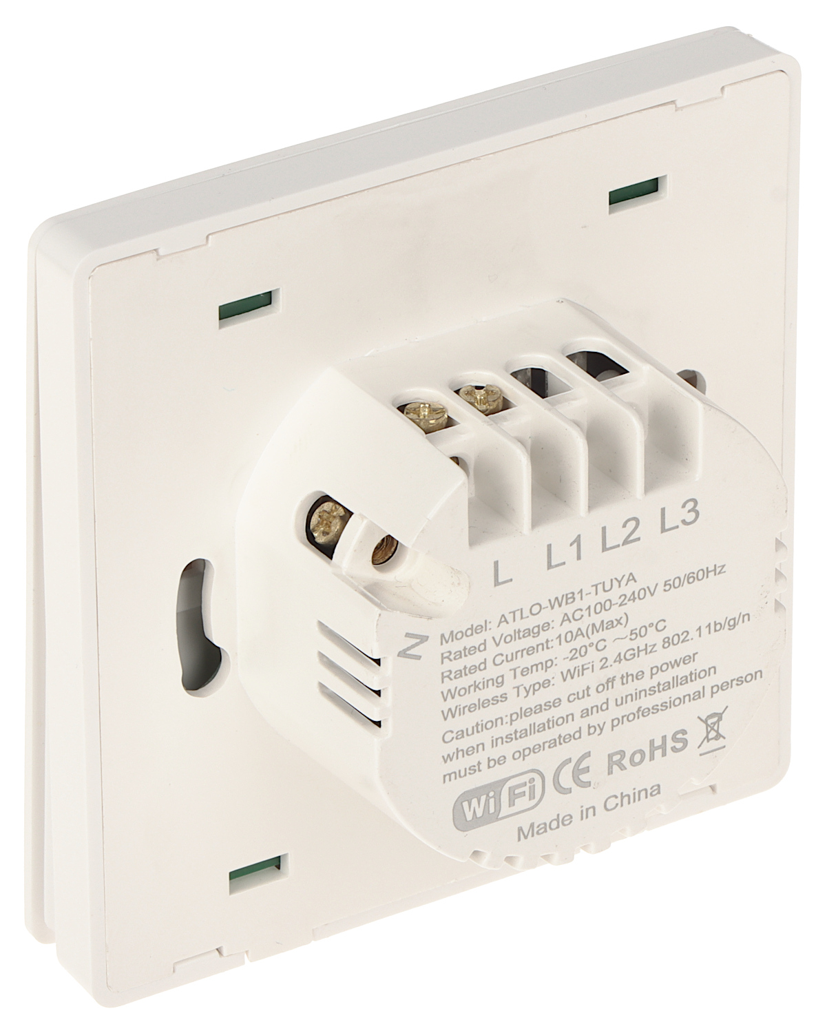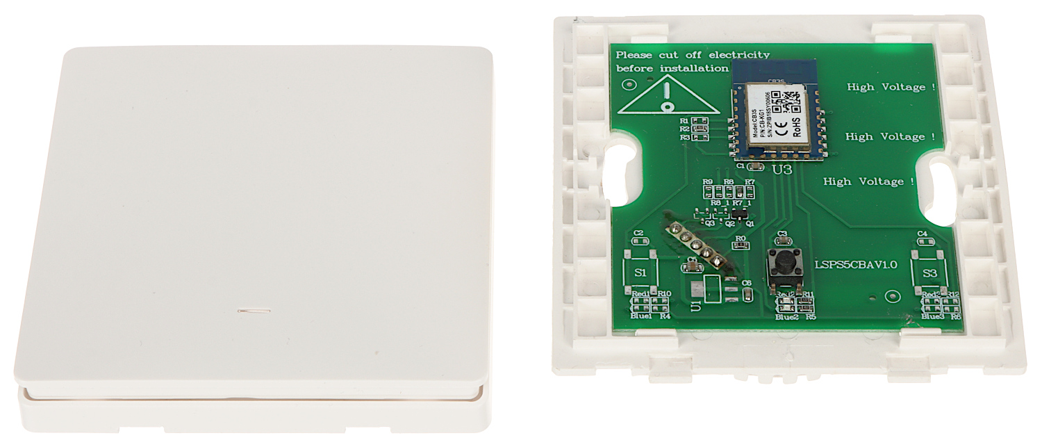 Application: Works with lighting - switching on/off ; Rated voltage: 100 ... 240 V AC ; Maximum power: 300 W (for each output) ; Number of buttons: 1 ; Number of outputs: 1 ; Connector type: screw terminals ; Wireless: Wi-Fi, 2.4 GHz - IEEE 802.11 b/g/n ; Main features: Local control by physical button, schedule, timer, Setting scenarios by different events, remote access, voice control ;