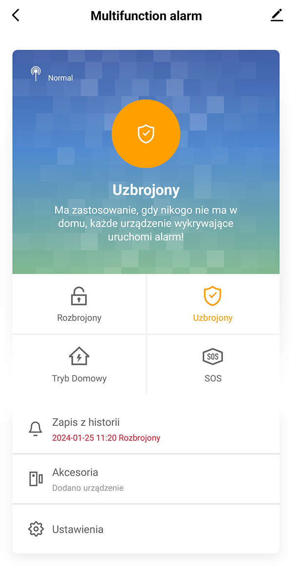 • One-touch action buttons : arm, disarm, arming only perimeter protection zones, SOS