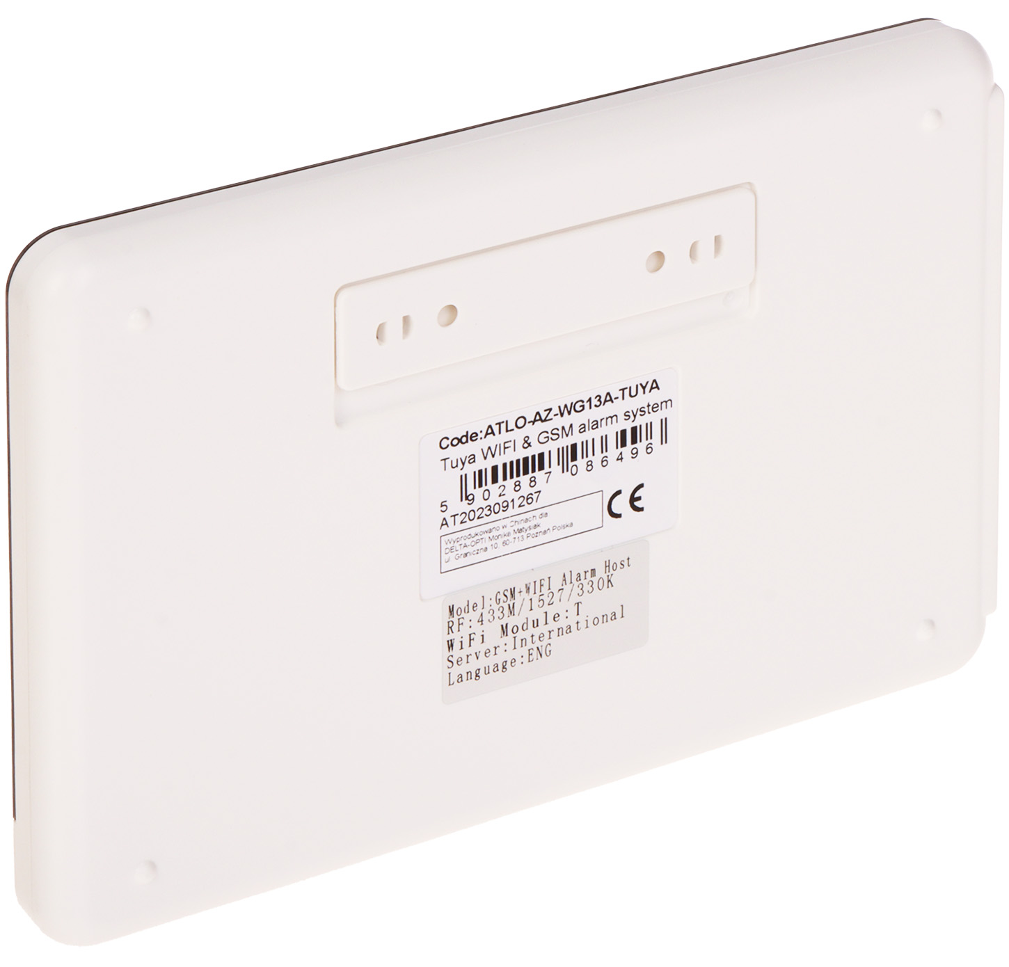 Number of supported wireless devices: max. 30 pcs ; Keyboard included; Wireless: 433 MHz ; Built-in modules: GSM, WiFi ; Main features: Bidirectional communication, Built-in alarm siren ; Frequency range: 433 MHz ; Radio communication range (at open area): max. 30 m ; Detection angle / Detection range: 120 ° / 12 m (max) ; Color: White ;