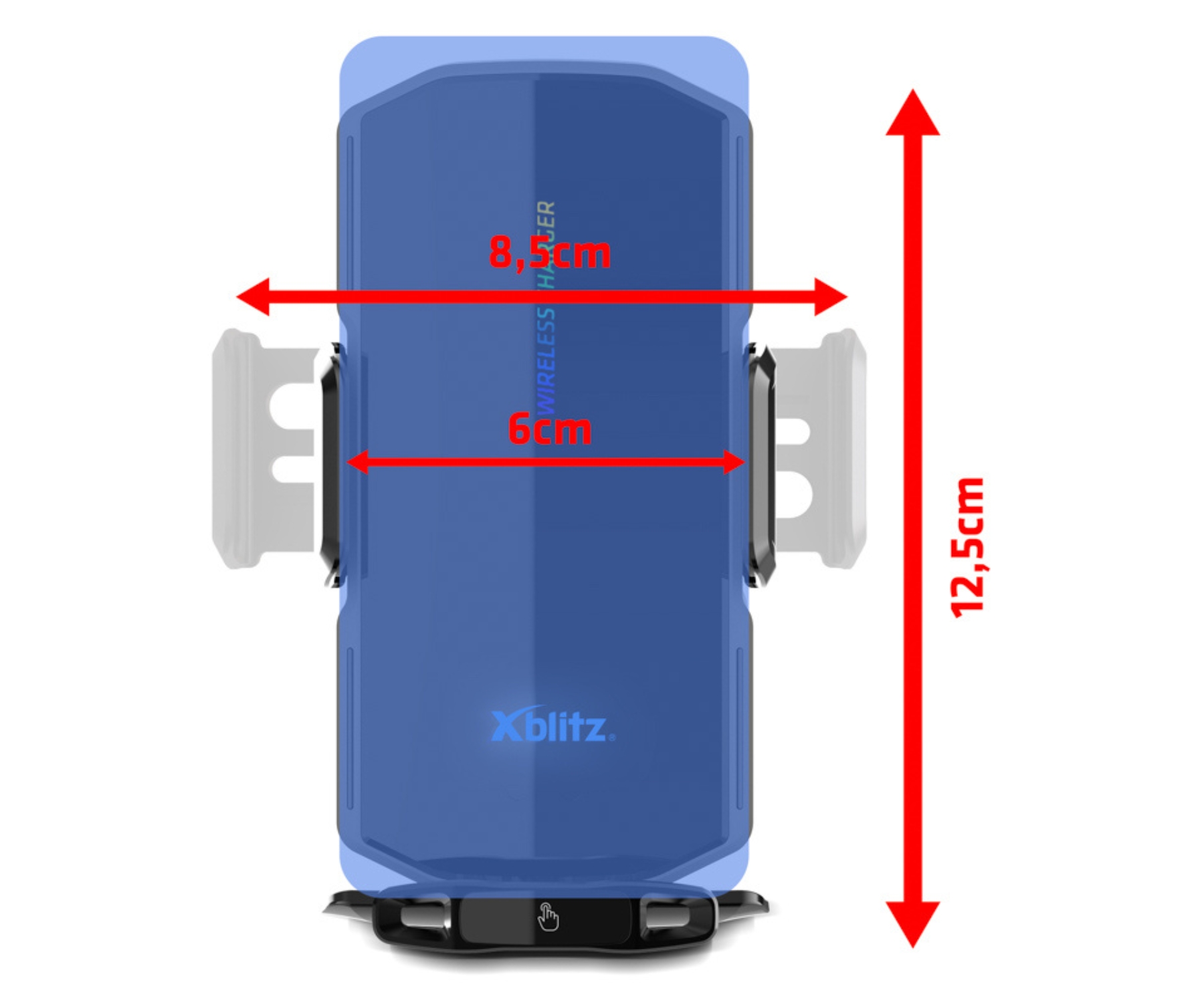 Method of mounting: Attachment to the ventilation grille ; Mobile device holder: Clamping ; Maximum arm size: 8.5 cm ; Main features: Automatic clamping of the device in the holder ; Charging method: wire ; Manufacturer / Brand: Xblitz ;