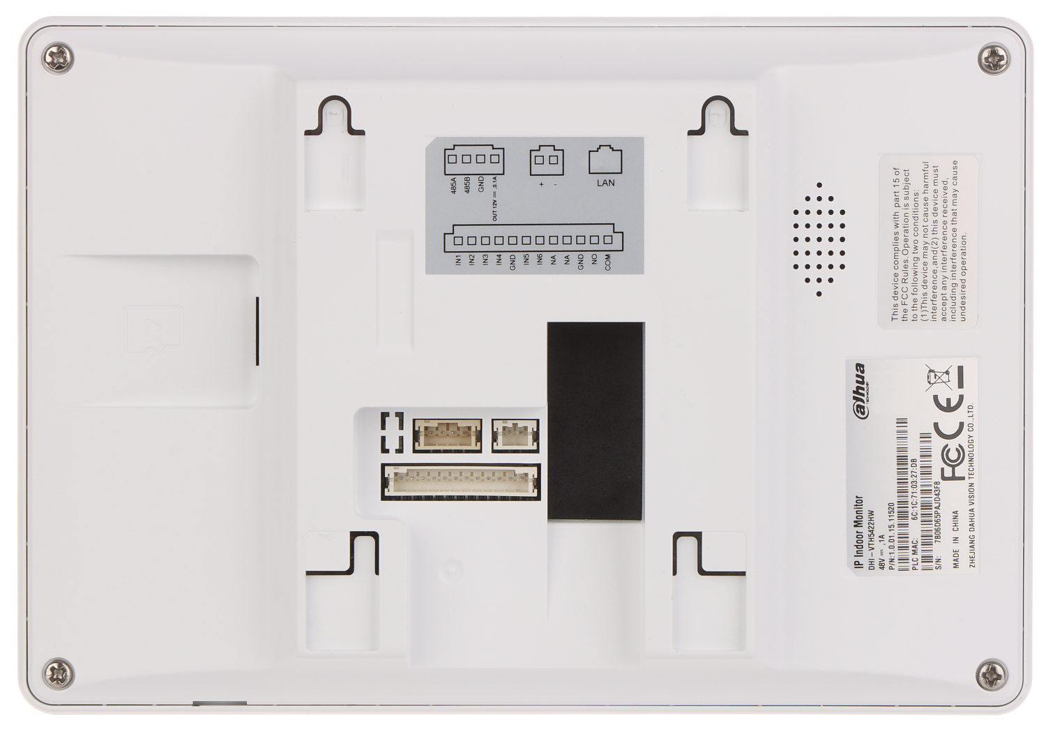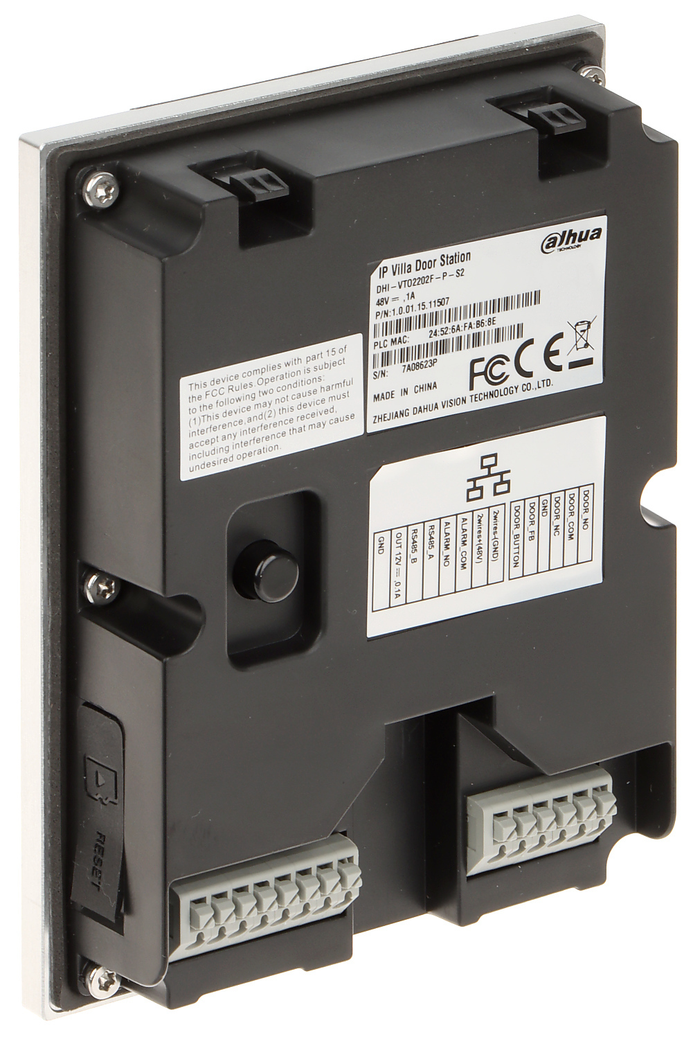 View angle: 168 ° ; IR illuminator; RS-485; Main features: Tamper detection - removing from mounting surface ; Power supply: PoE (802.3af), 2-Wire IP interface ; Shield: 7 " capacitive touch screen ; Memory card slot: Micro SD memory cards up to 64GB support (possible local recording) ; Main features: The ability to automatically take and save photos if you do not answer to the bell button ; Alarm inputs: ; Alarm outputs: ; Power supply: PoE (802.3af), 2-Wire IP interface ;