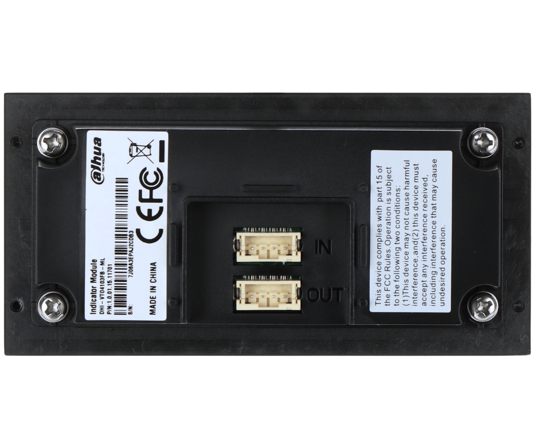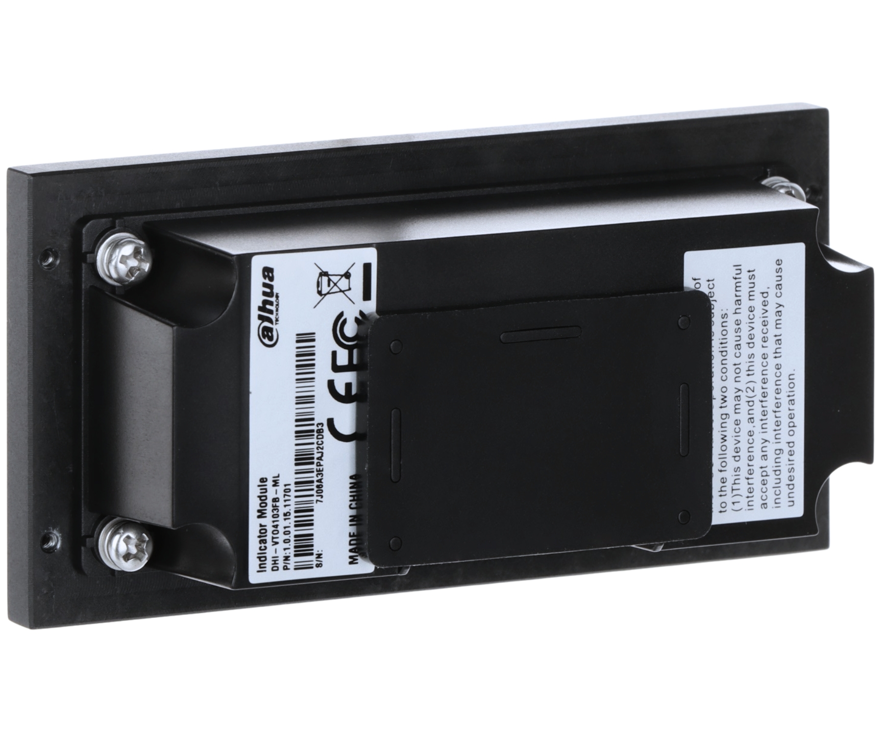 The VTO4103FB-ML module is equipped with 3 LEDs indicating the status of the device; Housing: Aluminum alloy + Plastic ; "Index of Protection": IP65 ; Mechanical protection class: IK07 ;
