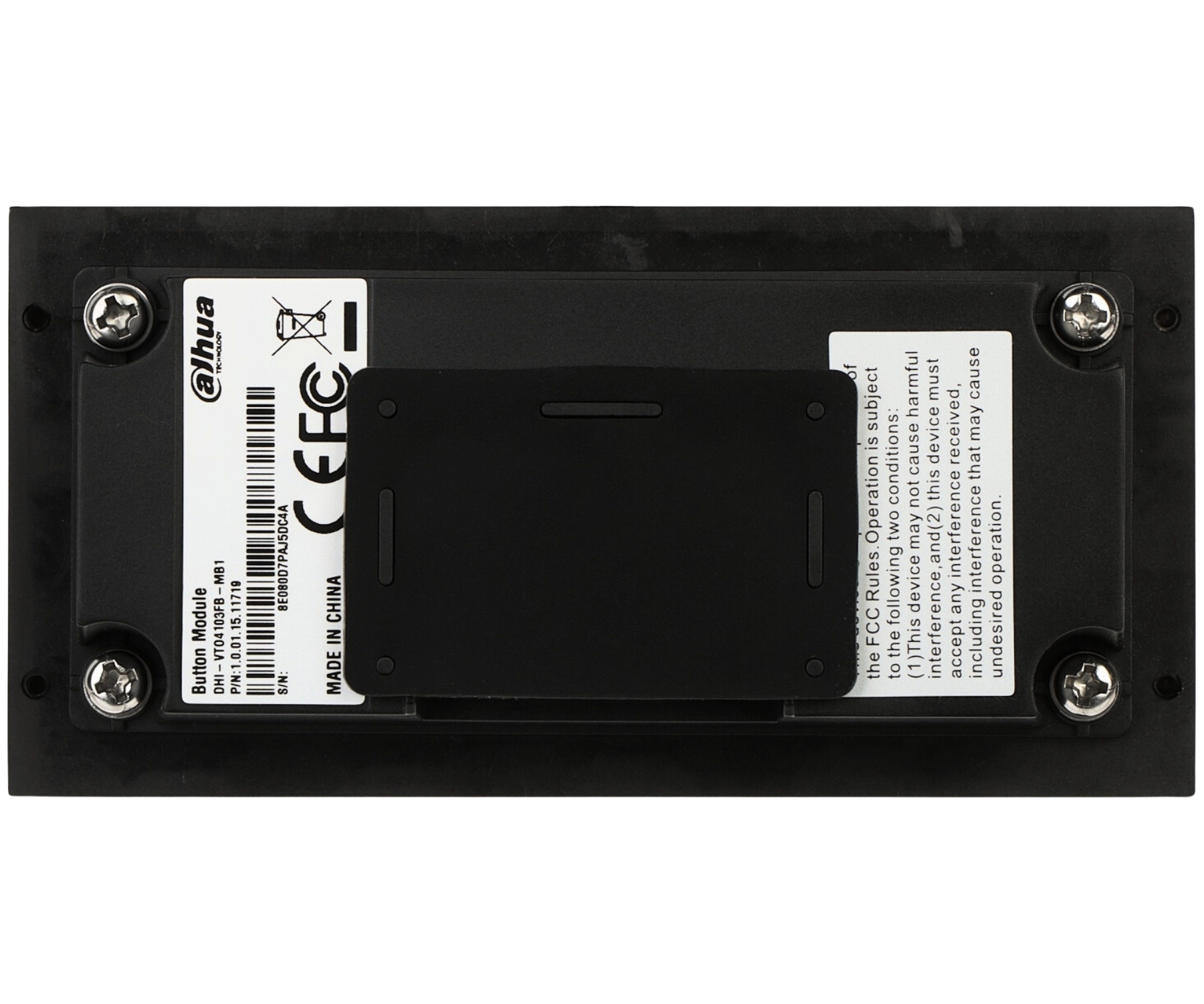 Compatibility: VTO4103FB-x ; Main features: Doorbell button - 1 pcs ; "Index of Protection": IP65 ; Mechanical protection class: IK07 ;