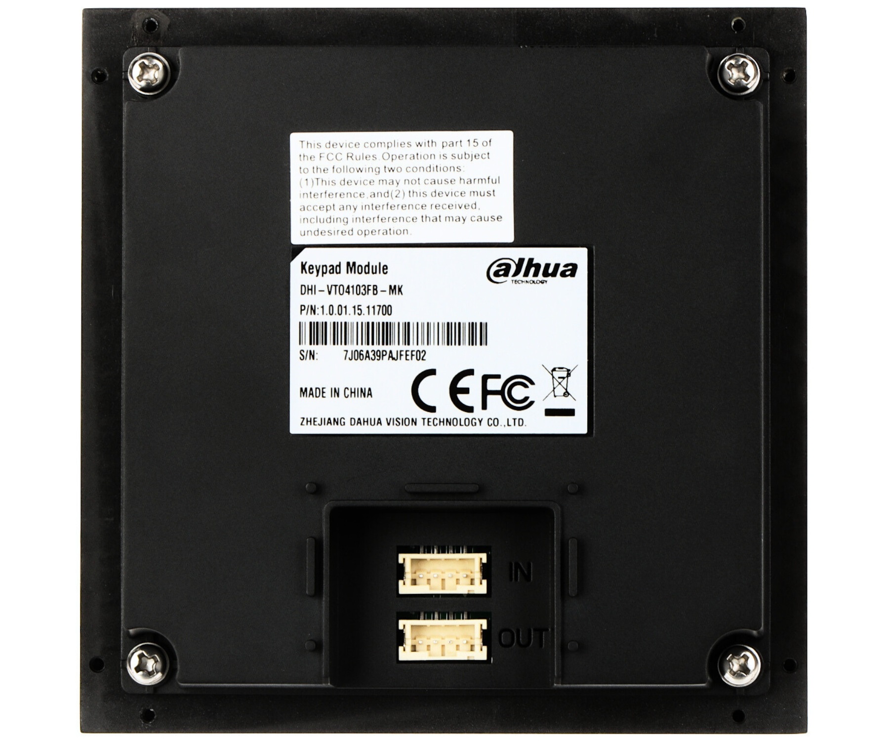 Compatibility: VTO4103FB-x ; Main features: White backlight ; "Index of Protection": IP65 ; Mechanical protection class: IK07 ;