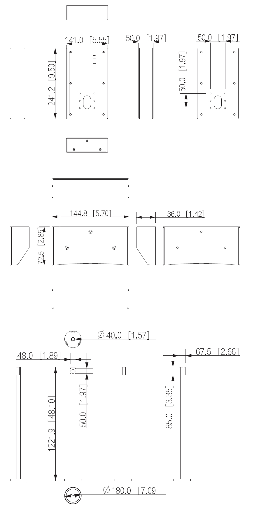 Ø 180 x 1222 mm ( pole with base )