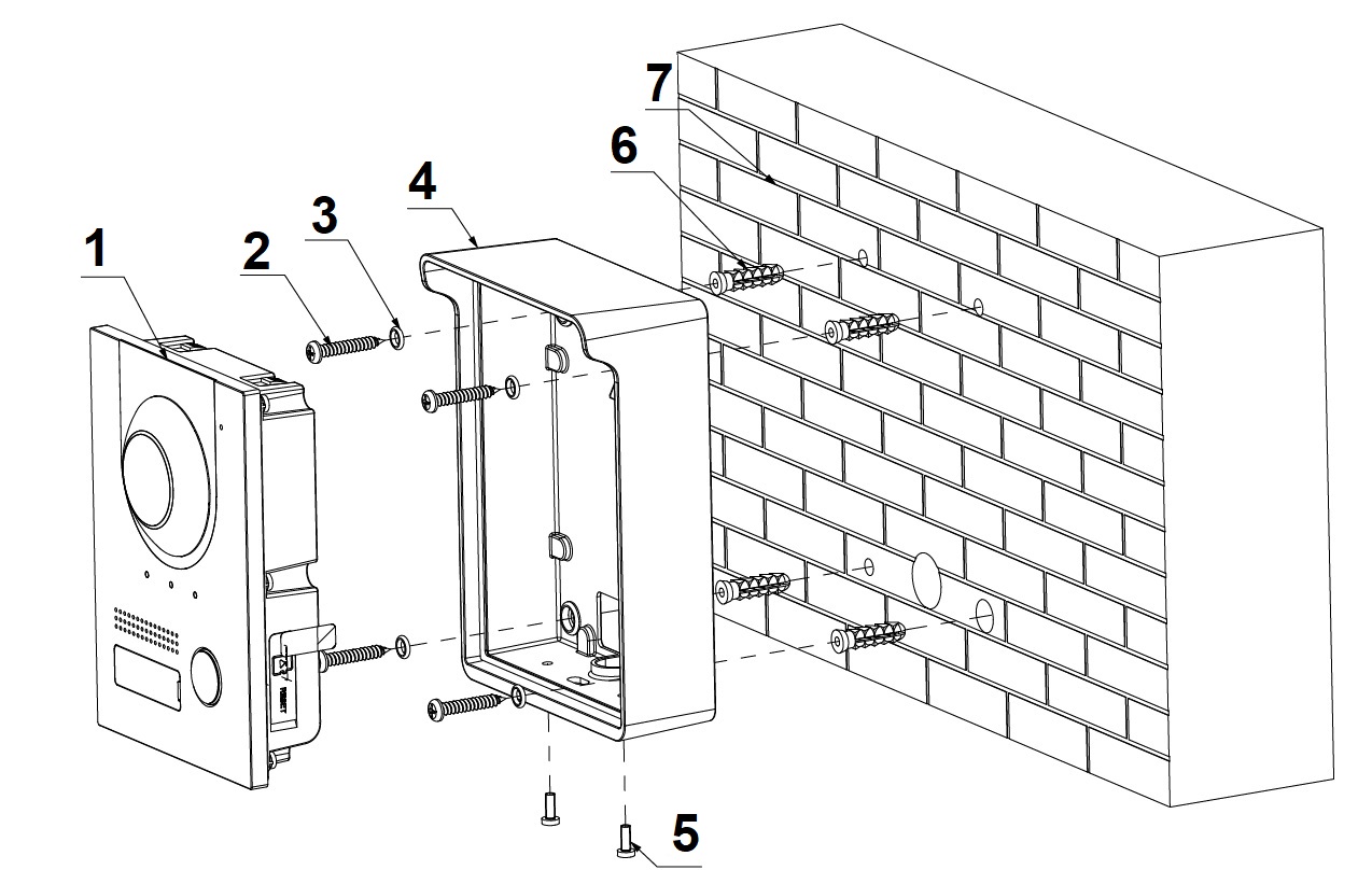 The surface mounting box with rain-shield is dedicated to the DAHUA VTO2202F series devices; Material: Aluminum alloy ; "Index of Protection": IP65 ;
