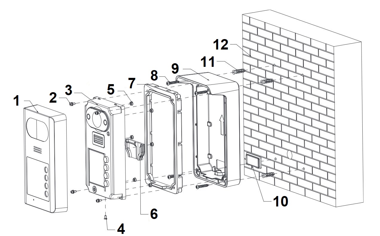 The surface mounting box with rain-shield is dedicated to the DAHUA VTO3211D series devices; Material: Aluminum alloy ; "Index of Protection": IP65 ;