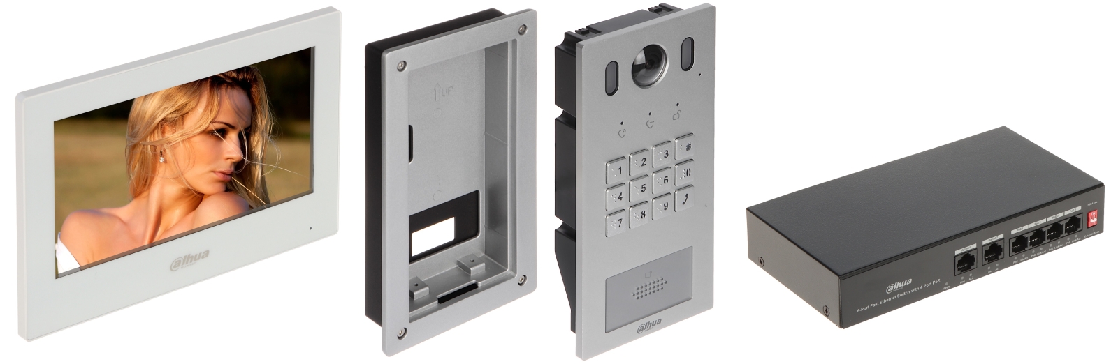 Sensor: 1/2.9 ", 2 Mpx CMOS ; View angle: 140 ° ; LED illuminator; proximity reader built-in: 13.56 MHz S50 ; Image compression method: H.265 / H.264 ; Main features: Bidirectional communication, Tamper detection - removing from mounting surface ; Shield: 7 " capacitive touch screen ; Resolution: 1024 x 600 ; Main features: Wi-Fi Module, Receive and view the published information from the management center ; Alarm inputs: ; Alarm outputs: ; Power supply: PoE, 12 V DC ; LAN ports: 4 x RJ45 10/100 Base-TX ( 4 x PoE (802.3af/at) ), 2 x RJ45 10/100 Base-TX - Uplink ; Transmission speed: 10 / 100 Mbps : 4 LAN & PoE ports + 2 Uplink ports ;