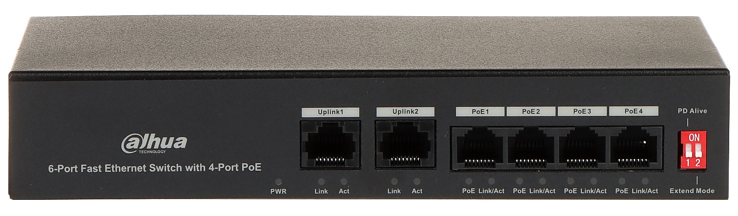 Transmission speed: 10 / 100 Mbps : 4 LAN & PoE ports + 2 Uplink ports