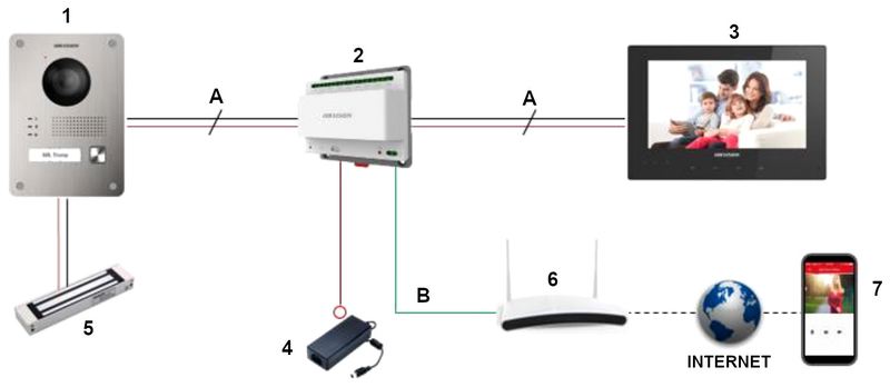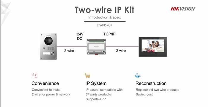 Комплект двухпроводного видеодомофона HIKVISION с 7" сенсорным монитором и контроллером для подключения и питания максимально 9 групп устройств. Видеодомофон установлен в корпусе для скрытого монтажа. Устройство может работать с приложением Hik-Connect для мобильных устройств. Подключенный контроллер DS-KAD709 позволяет также подключение видеодомофонной системы к сети LAN и через нее к Интернету. • IP Внутренняя видео панель DS-KH8340-TCE2 • Вызывная панель DS-KV8103-IME2 • Двухпроводный контроллер DS-KAD709