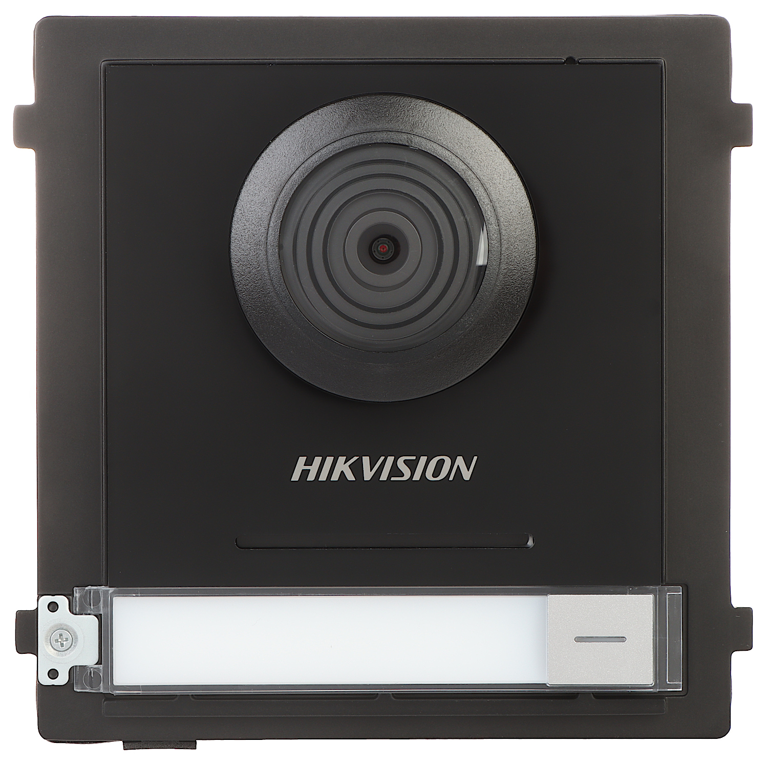 The DS-KD8003Y-IME2 module is the main unit of the video doorphone modular system of Hikvision brand; Doorbell button: 1 pcs ; Sensor: 2.1 Mpx CMOS ; Camera resolution: 1920 x 1080 ; Camera view angle: 146 ° ; IR illuminator; Alarm inputs: 4 pcs ; Relay outputs: 2 x NO/NC ; Main features: Bidirectional communication, Tamper detection - removing from mounting surface ; Power supply: 24 V DC - HIKVISION 2-wire ;