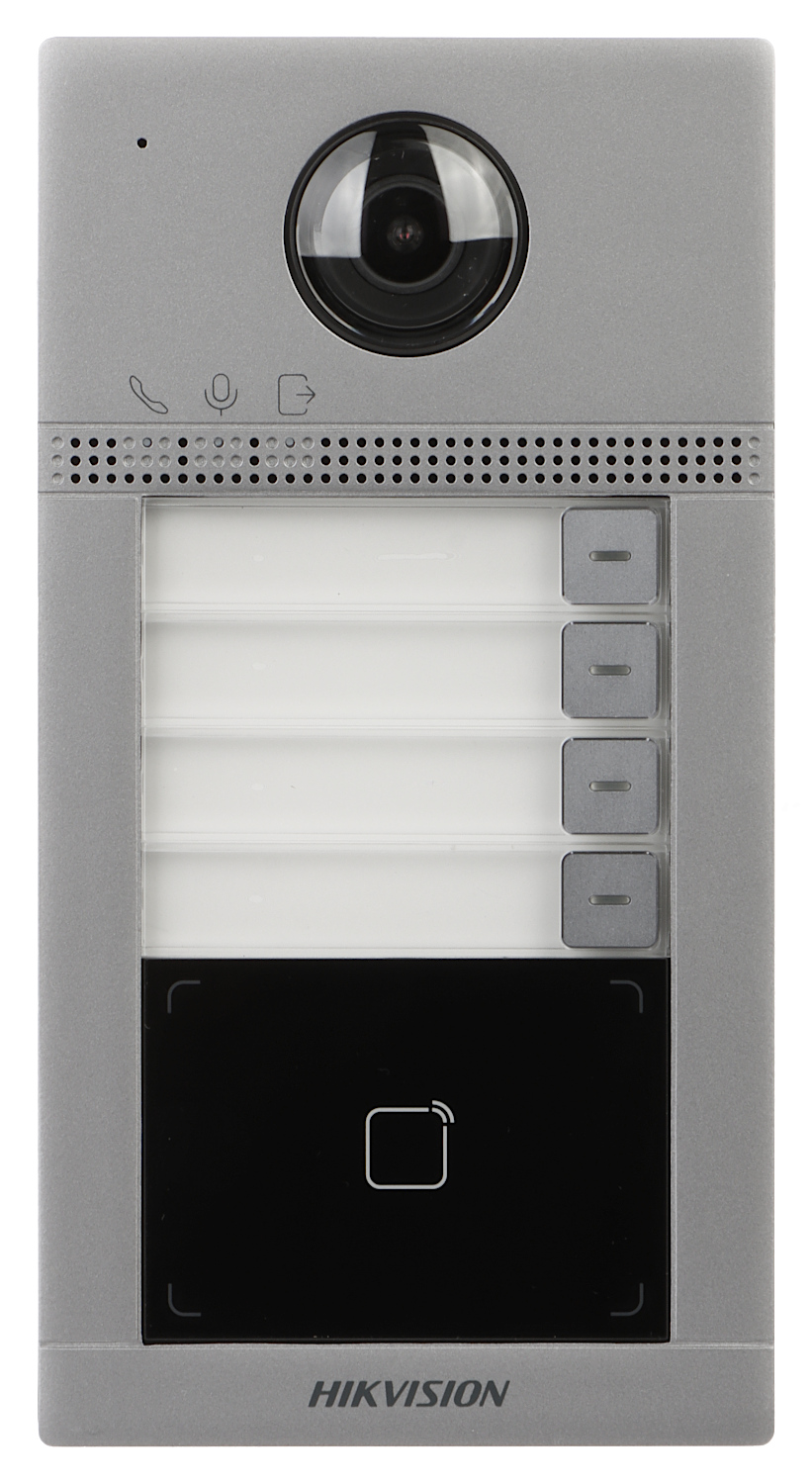 Resolution: 1920 x 1080 ; Camera view angle: 124 ° ; IR illuminator; Doorbell button: 4 pcs ; proximity reader built-in: 13.56 MHz S50 ; RS-485 interface; Alarm inputs: 4 pcs ; Main features: Bidirectional communication, ;