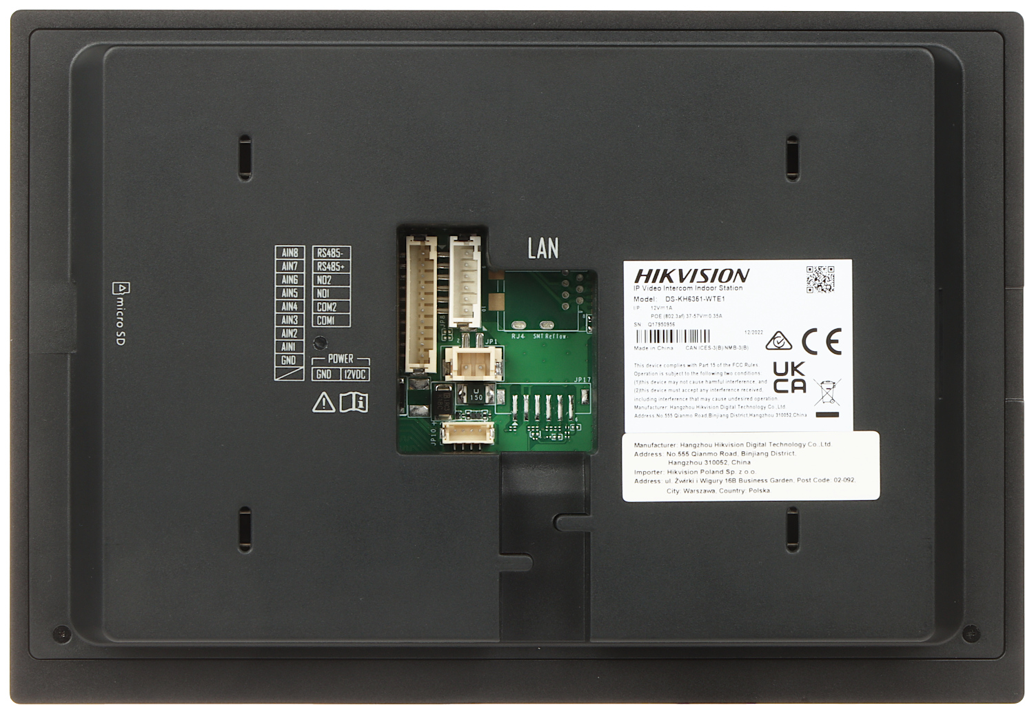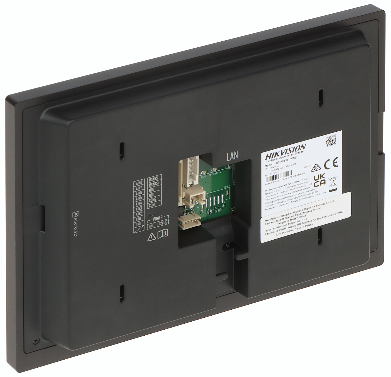 Compatibility: Hikvision IP Video Doorphones ; Shield: 7 " - capacitive touch screen ; Resolution: 1024 x 600 ; Internal memory: 128 MB (built-in) ; Main features: Wi-Fi Module - IEEE 802.11 b/g/n, Bidirectional communication, Automatically capture and save photos if there is no response to the bell button, ; Alarm inputs: ; Power supply: 12 V DC, IEEE 802.3af ;