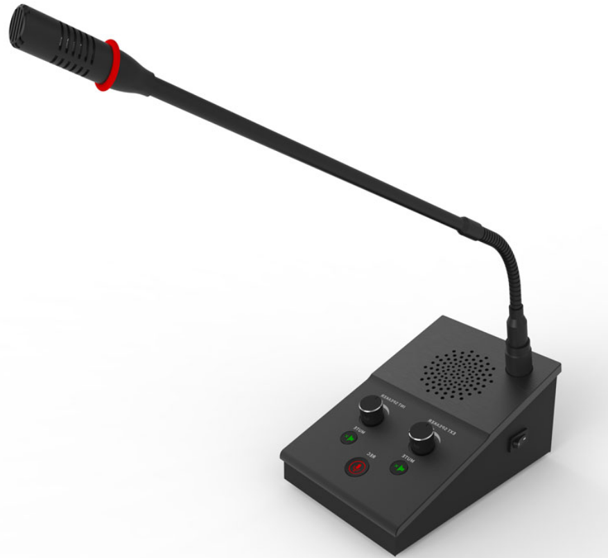 1. Turn on the power switch. The green LED on the "station mute button" will illuminate, and the red power LED on the microphone arm will also illuminate, indicating that the power is working properly.