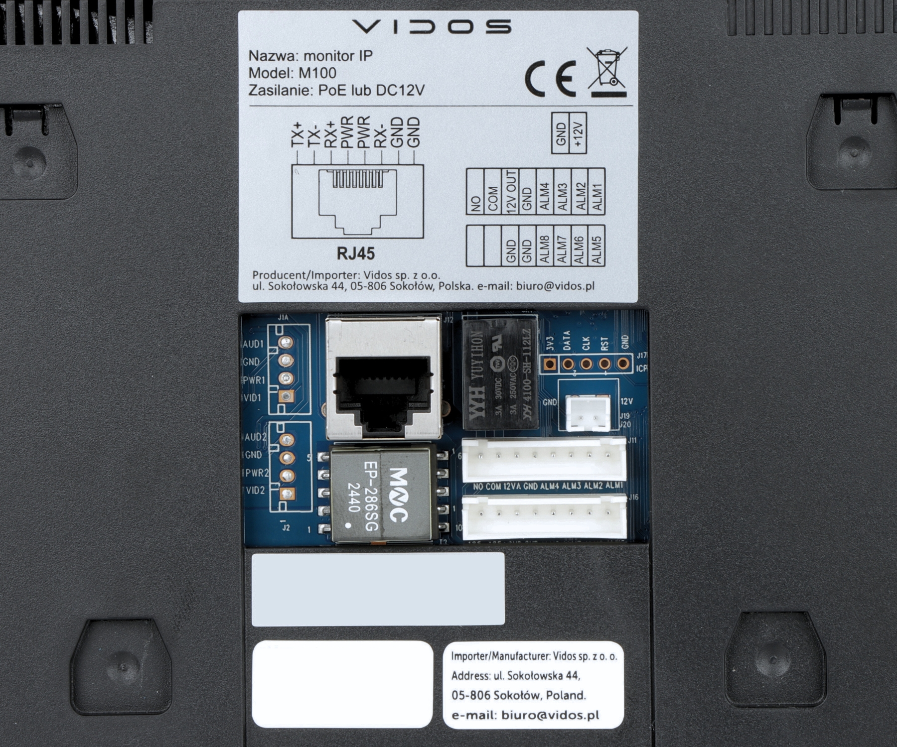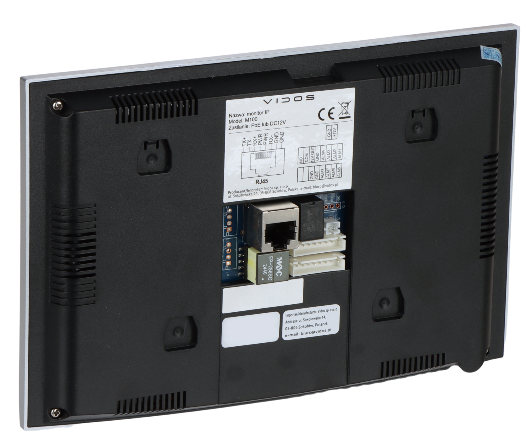 Compatibility: Vidos IPX ; Shield: 7 " touch screen ; Resolution: 1024 x 600 px ; Main features: Automatic or manual image recording, Volume adjustment ; Power supply: 12 V DC PoE 802.3af ;
