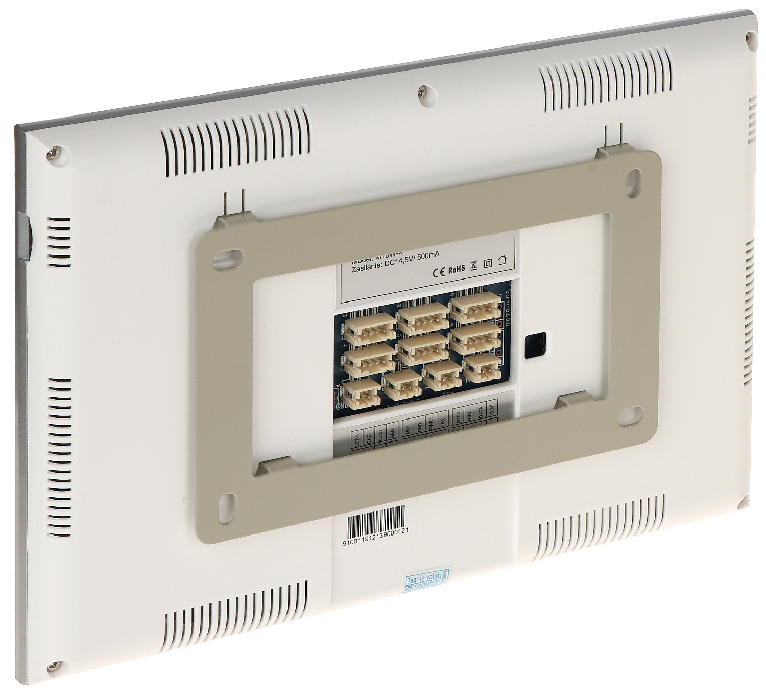 Shield: 7 " capacitive touch screen ; Resolution: 1024 x 600 ; Main features: Possibility to connect 2 door stations and 2 CCTV cameras (AHD, CVI, TVI, CVBS) working in 1080p / 720p / CVBS resolutions, Automatic or manual image recording Intercom and call forwarding function, Bidirectional communication, ; Power supply: 14.5 V DC ; Max. current: 1 A (power adapter included) ;