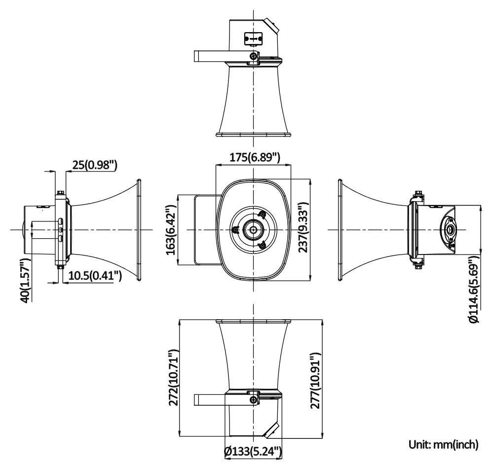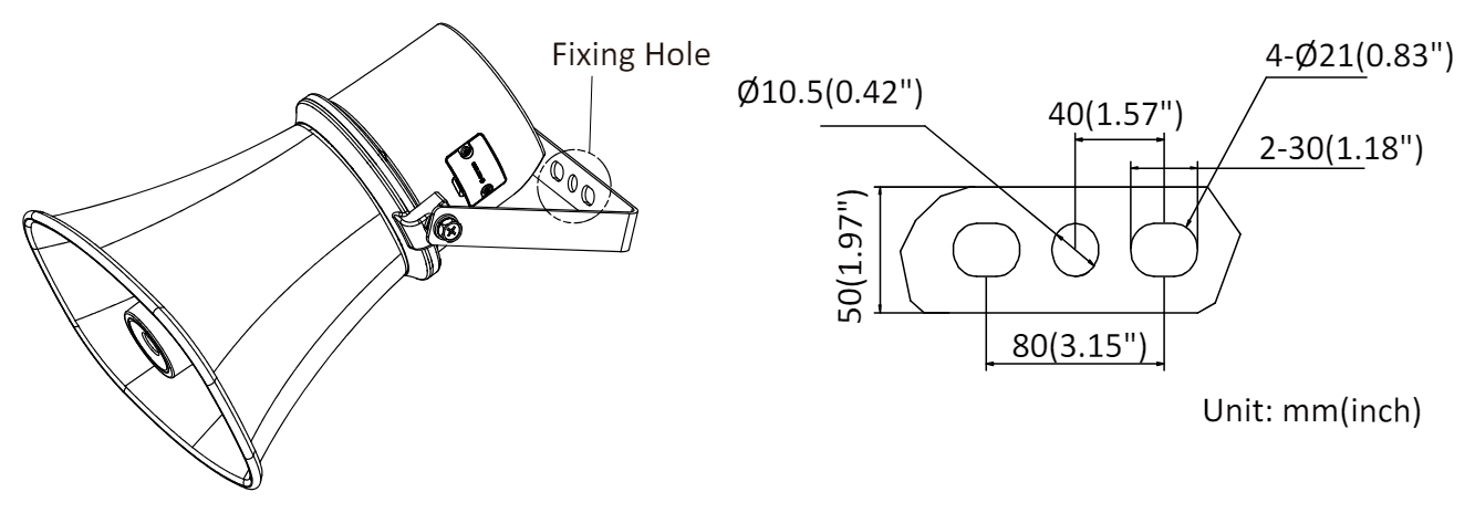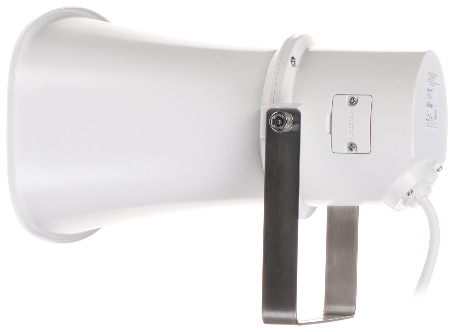 Bandwidth: 300 Hz ... 13 kHz ; Sound pressure level: 121 dB SPL ; Speaker directivity: 70 ° horizontal 100 ° vertical ; Gain adjustment; Main features: Microphone built-in Sensitivity adjustment Bi-directional audio streaming support ; "Index of Protection": IP67 ; Power supply: PoE (802.3at) ; Power output: 12 V DC ;