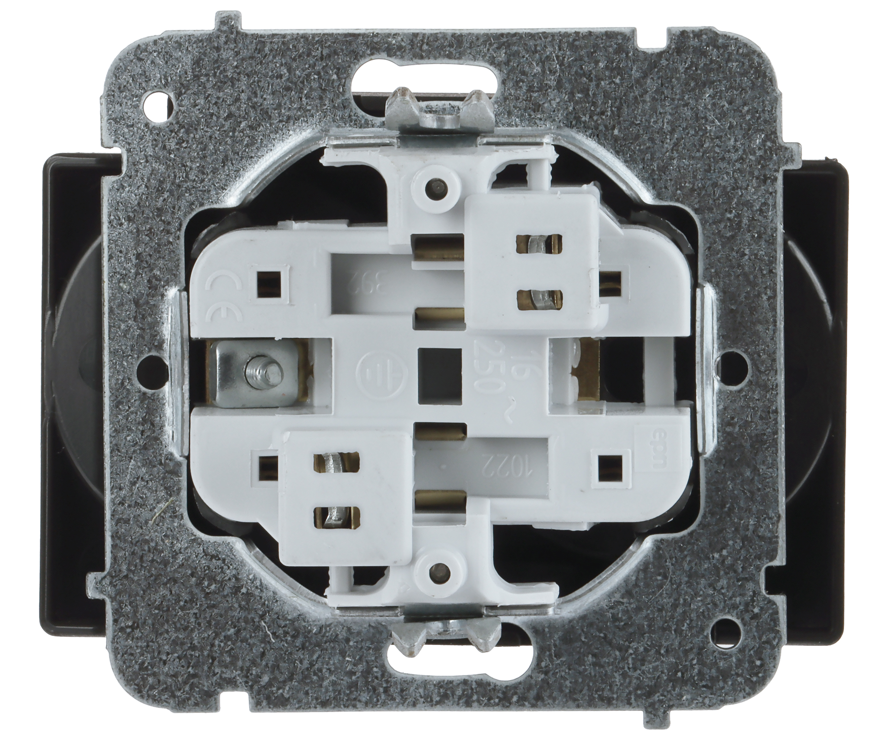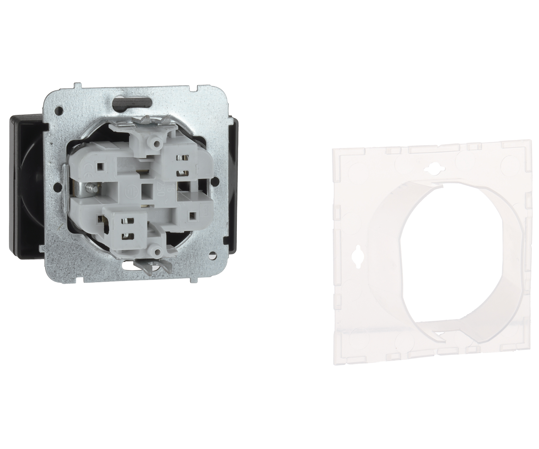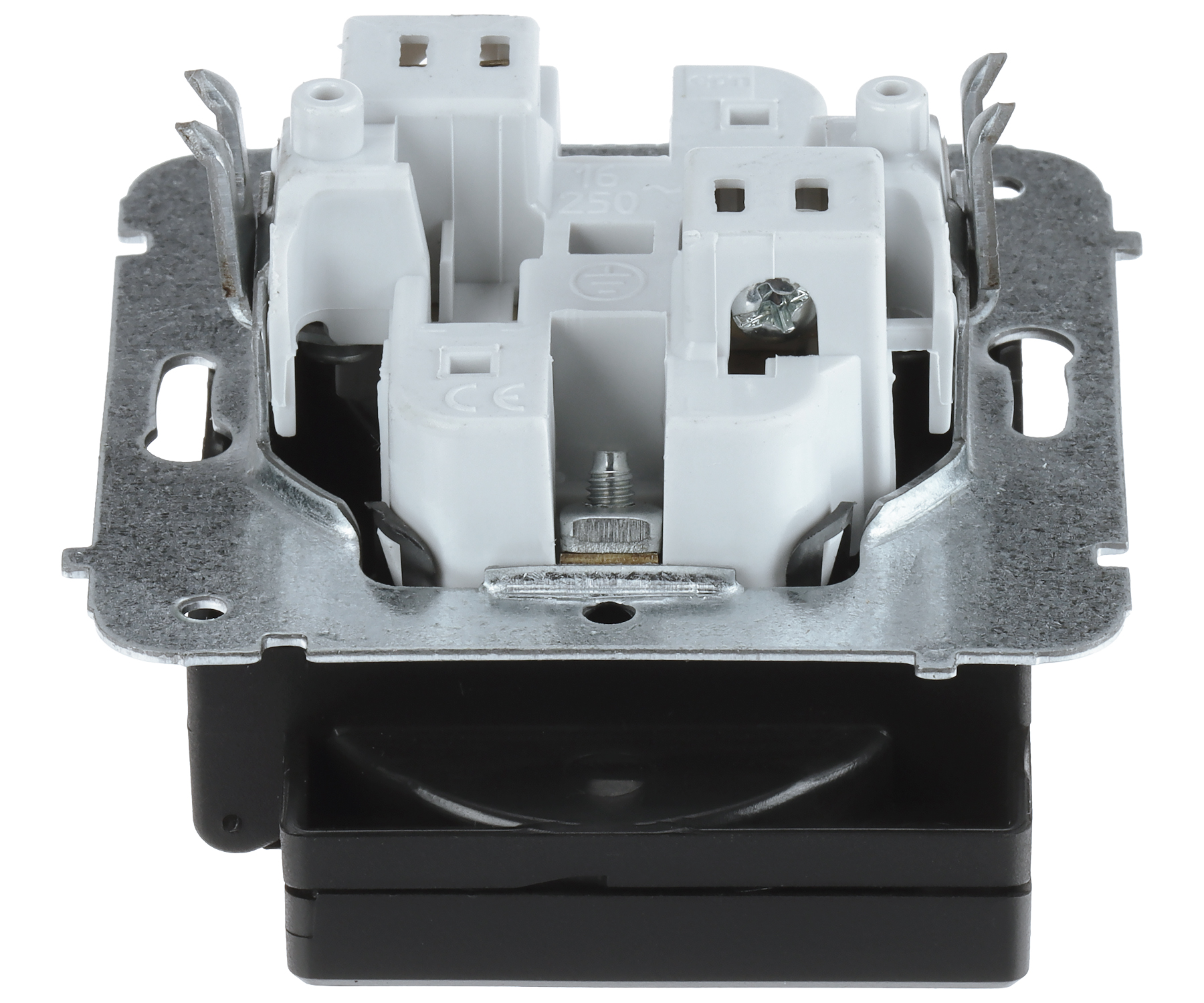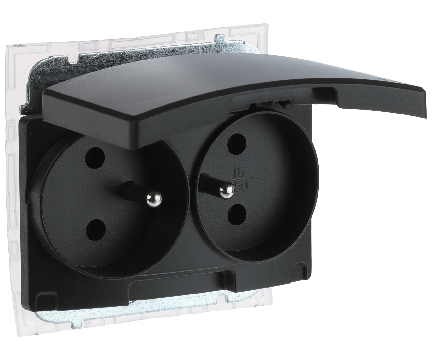 Rated voltage: 230 V / 50 Hz ; Maximal current load: 16 A ; Grounding; Cable terminals: screw terminals ; Socket type: CEE 7/5 ; Main features: Splash-proof casing ; "Index of Protection": IP44 ; Color: Black ;