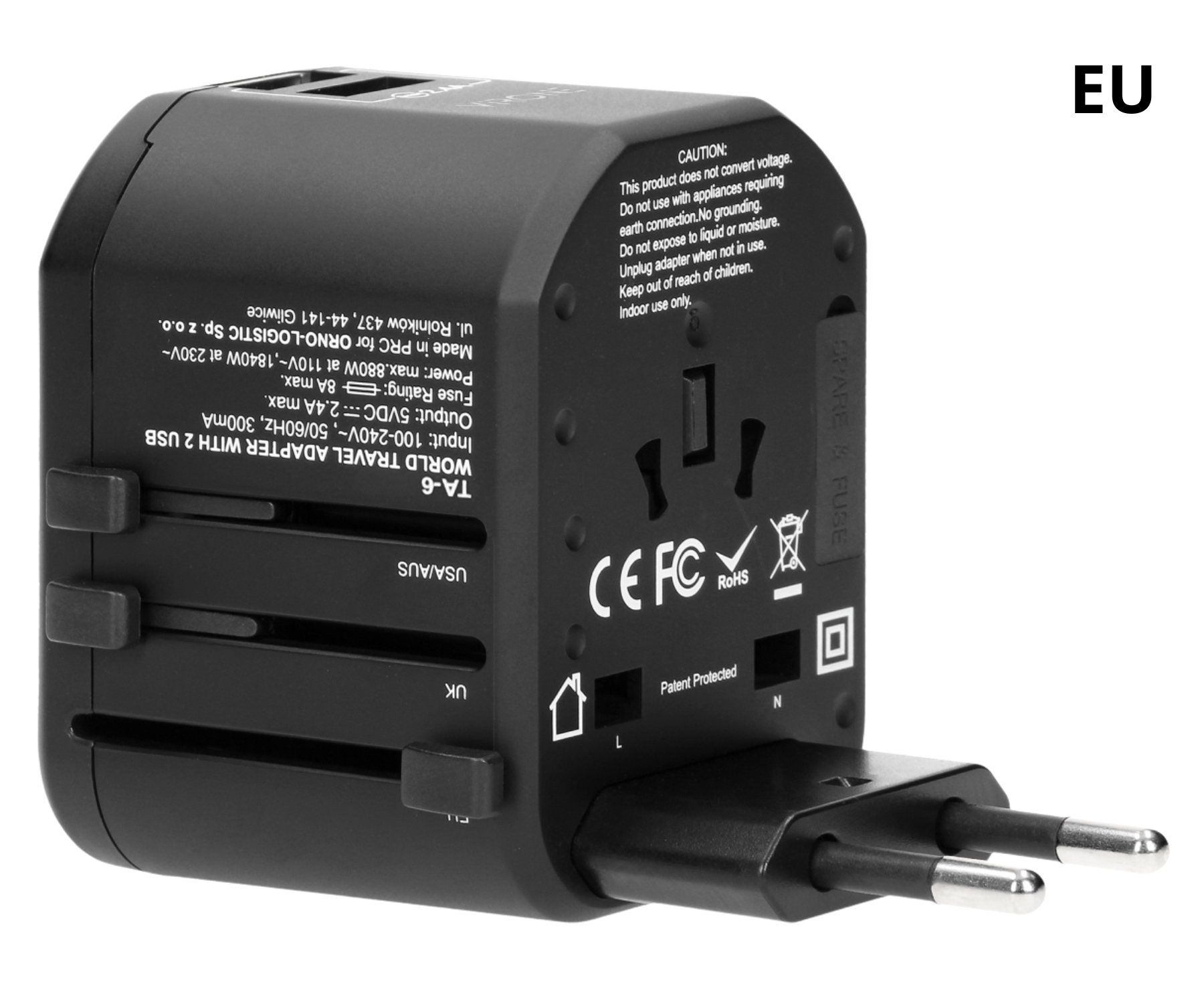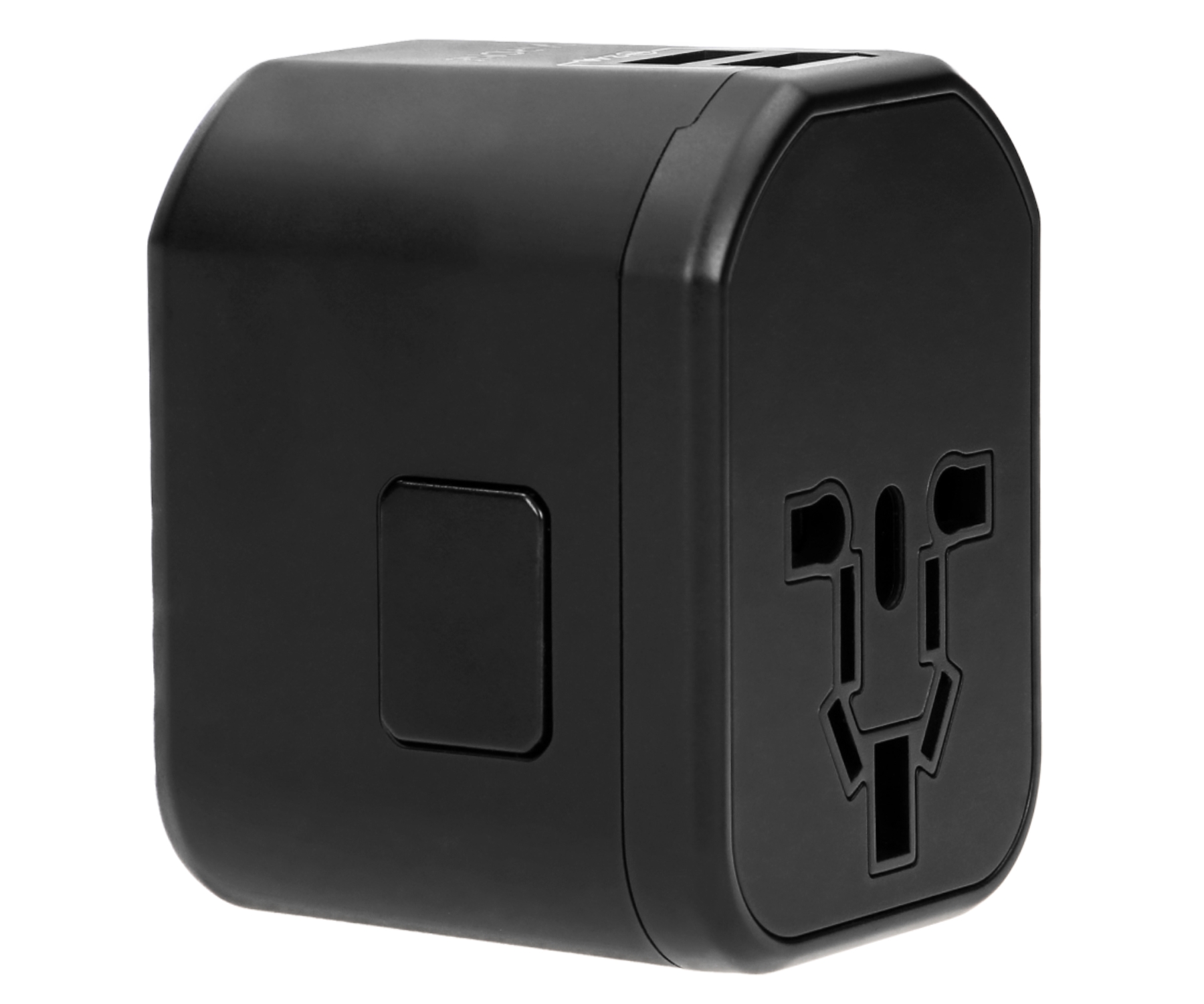 Voltage: 100 ... 240 V AC ; Max. current: 8 A ; Main features: 2 x USB-A port 5 V / 2.4 A, Color : Black ;
