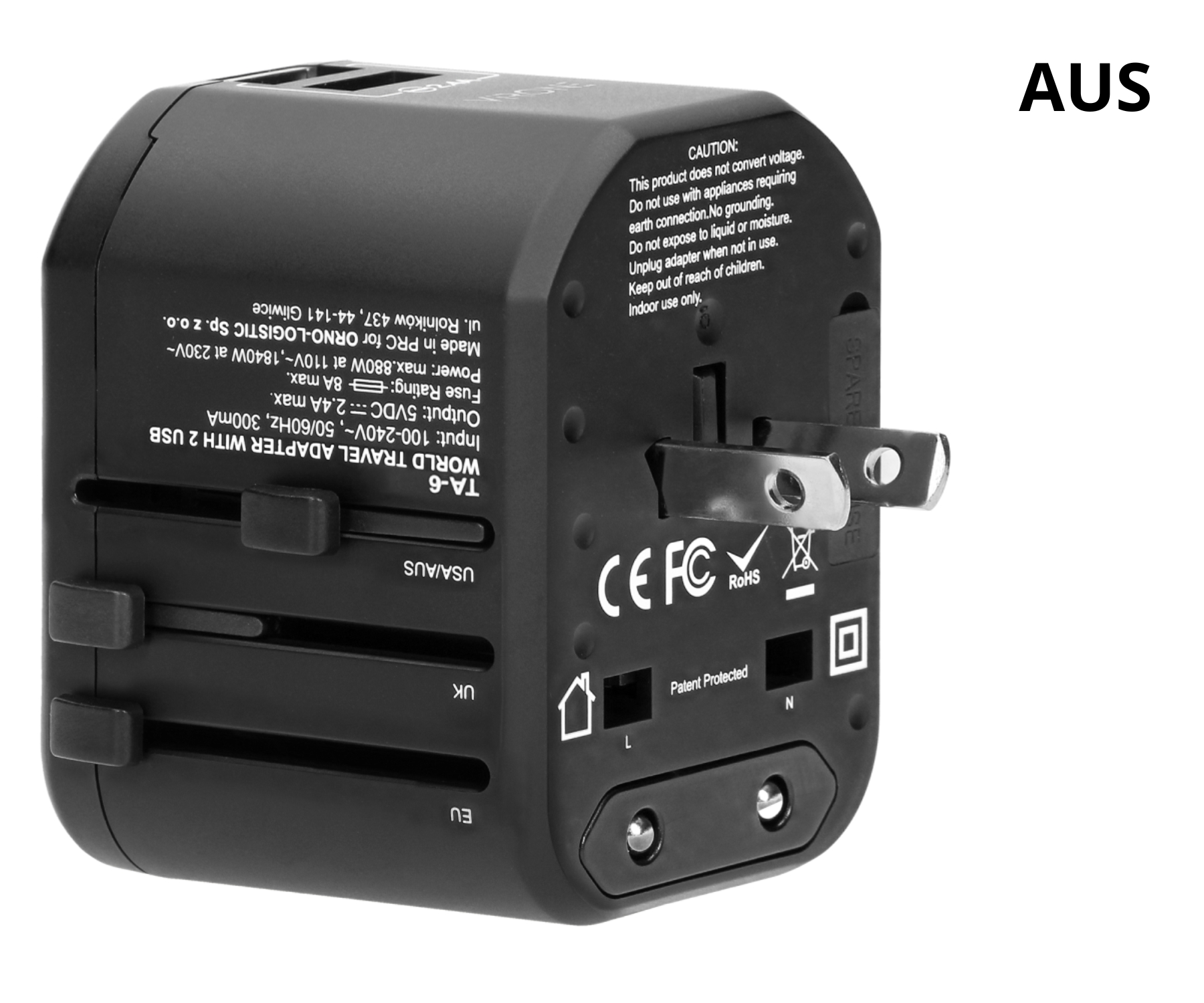 • Charging the devices, eg. smartphones, etc. : 2 x USB-A port 5 V / 2.4 A,