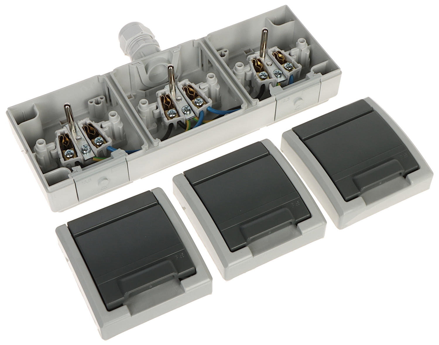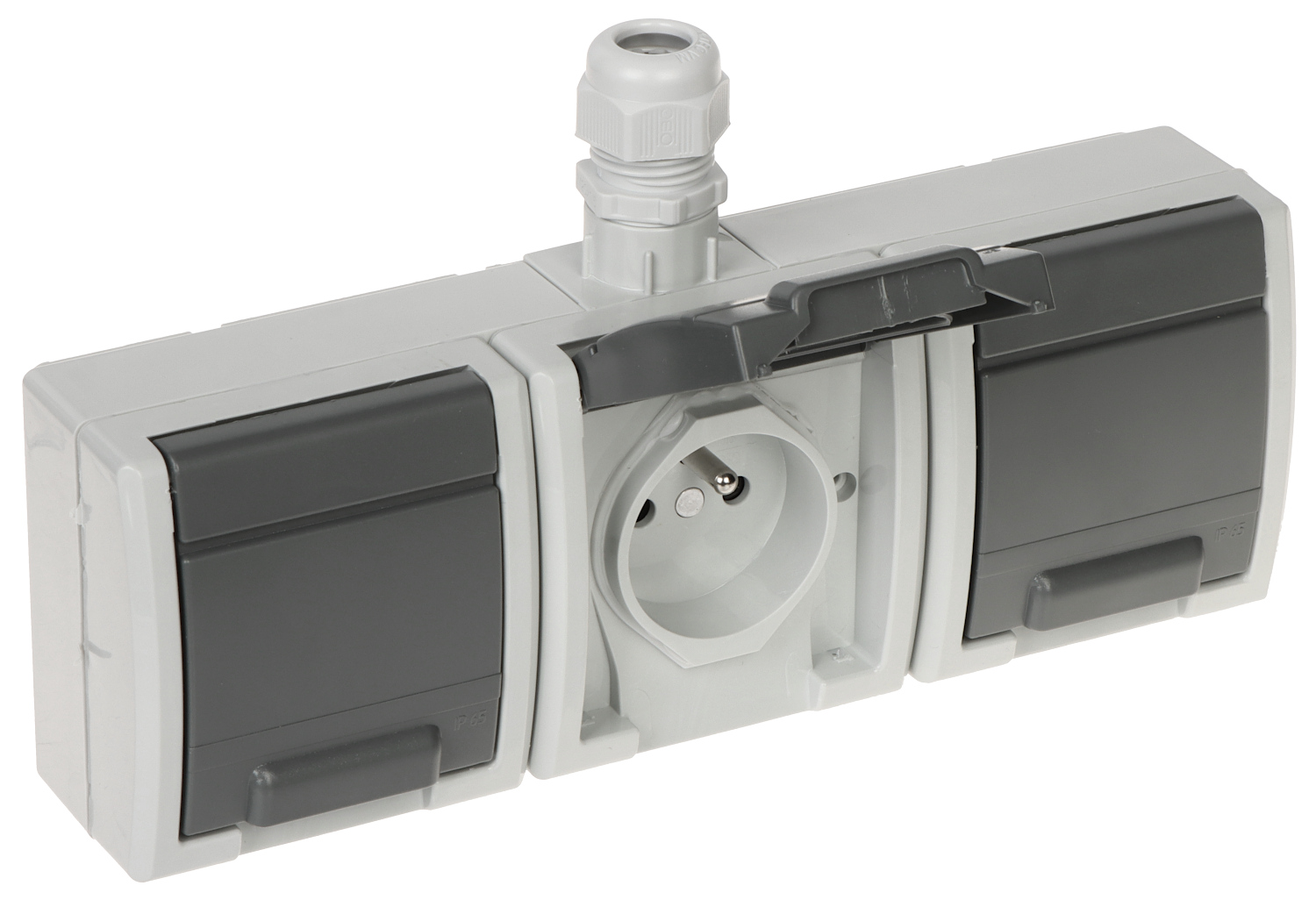 TRIPLE SURFACE SOCKET OUTLET AQUANT-G3/EPN 230 V AC 16 A IP65 Elektro-Plast